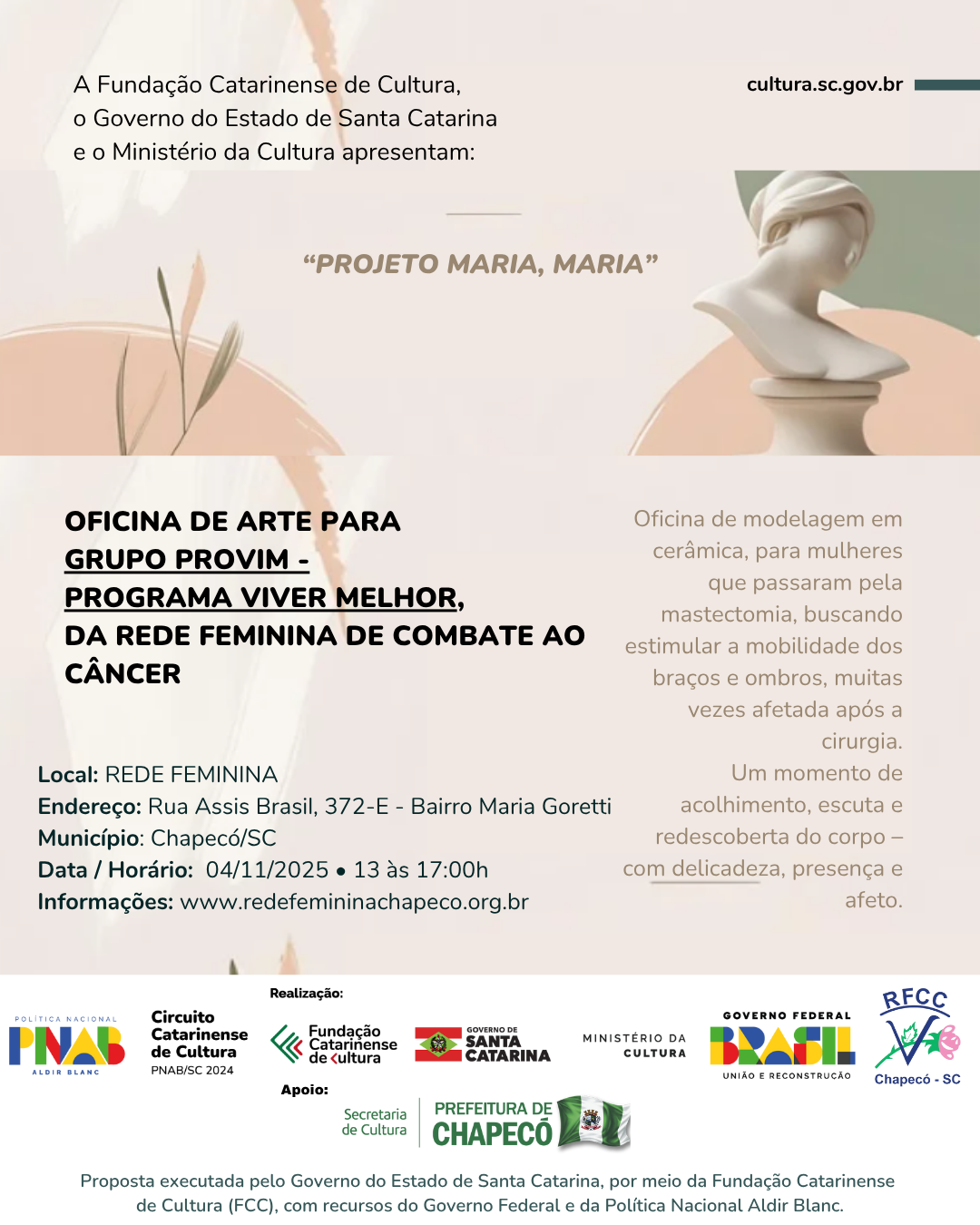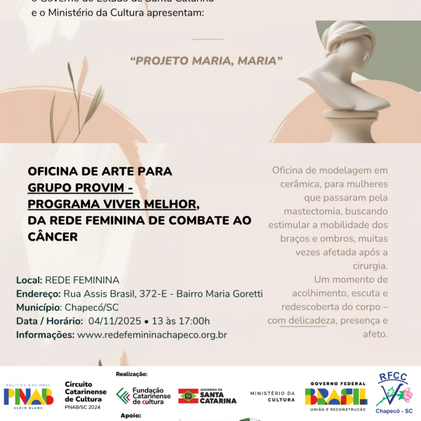 Oficina de modelagem em cerâmica para mulheres que passaram por mastectomia