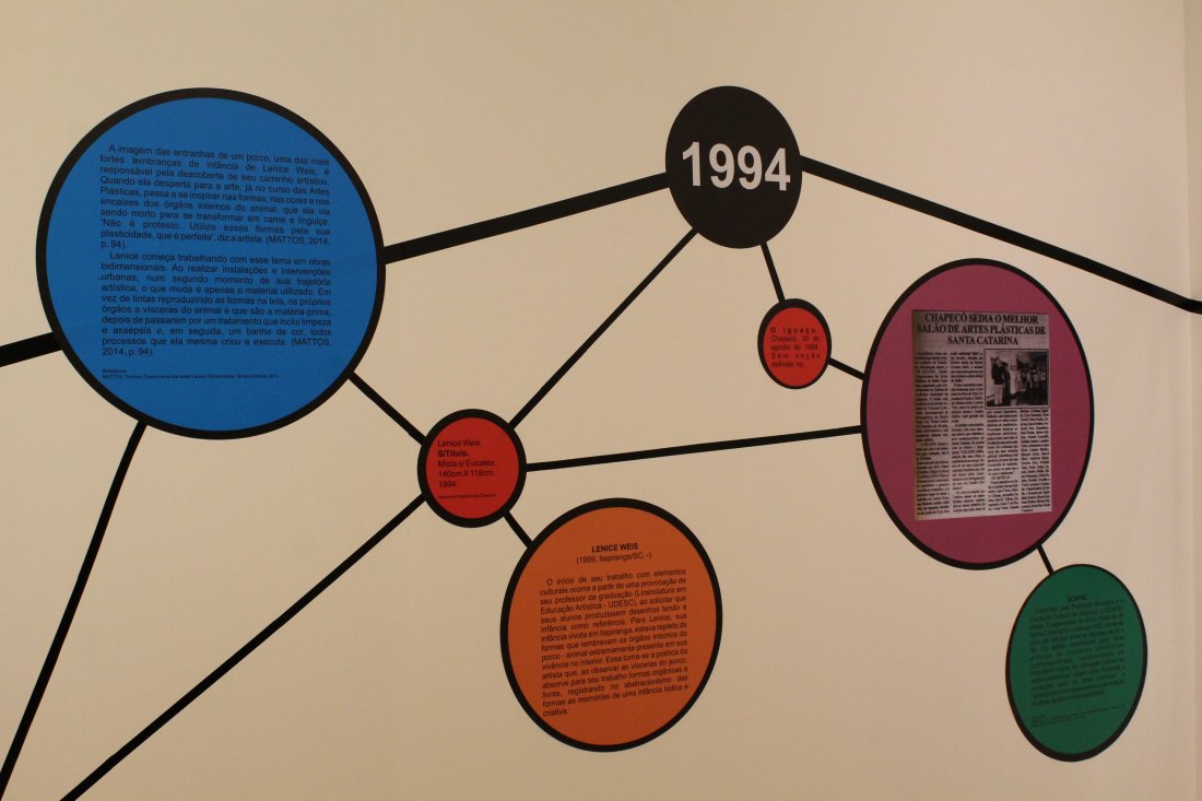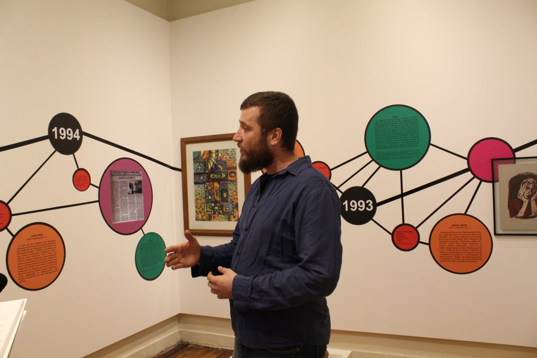 Chapecó, 15/05/2019, quarta-feira – A programação da 17ª Semana Nacional dos Museus 2019 em Chapecó tem como principal atividade a Exposição de Artes Visuais “ARTES VISUAIS EM CHAPECÓ NA DÉCADA DE 1990: uma abordagem cartográfica”, apresenta a produção de artistas que atuaram em Chapecó, com curadoria de Ricardo de Pellegrin (Ricardo Garlet). A exposição propõe a pesquisa e a divulgação dos artistas locais que atuaram no período entre 1990 e 2000, empregando como recorte o acervo de obras das galerias e dos Museus da Prefeitura de Chapecó. A expografia da mostra foi motivada pelo conceito de cartografia, onde os dados, as entrevistas, os documentos e as obras estão dispostos no espaço em uma organização visual que permite agrupar as informações por tipologia e simultaneamente propõe conexões e leituras diversas a partir de qualquer ponto da exposição.