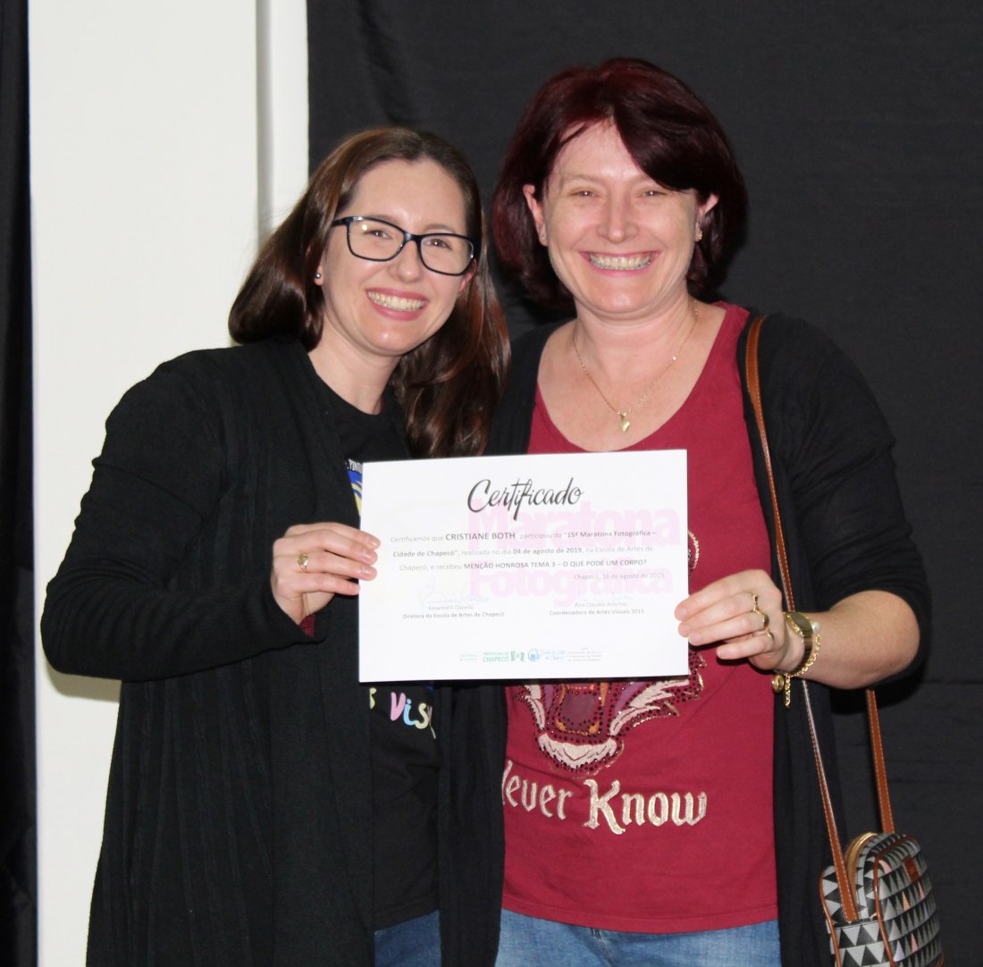 Na sexta-feira (16/08) aconteceu a premiação dos participantes da 15ª edição da Maratona Fotográfica – Cidade de Chapecó. Um evento que já é tradicional na agenda de aniversário do Município. A Maratona Fotográfica teve 12 horas ininterruptas de fotografia, a partir de 12 temas, com a principal finalidade de fazer um registro fotográfico da cidade de Chapecó, com diferente olhares. A Maratona teve 50 inscritos nas modalidades fotografia digital colorida e preto e branca, nas categorias júnior e sênior.