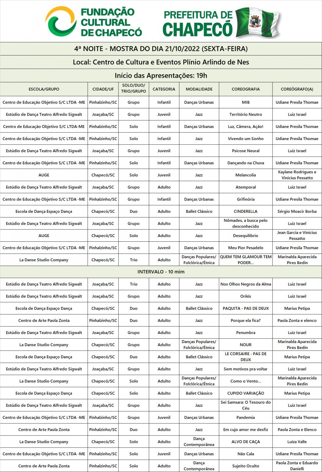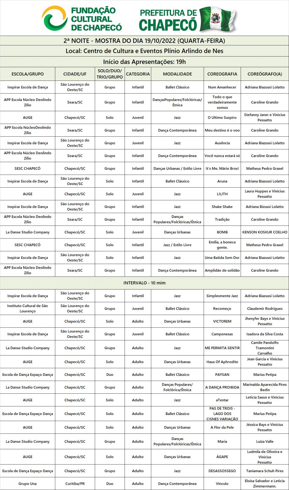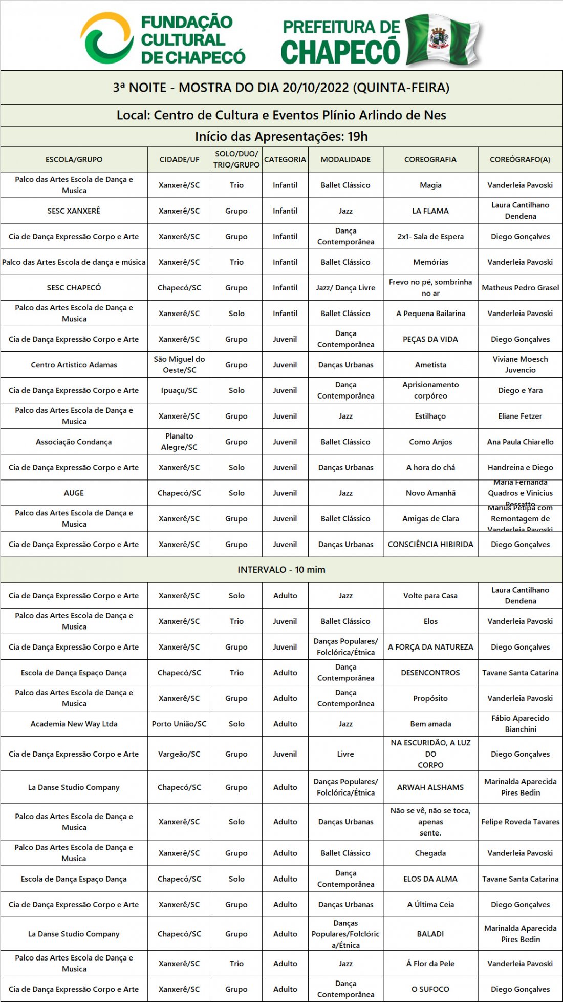 Os Ingressos deverão ser adquiridos na Escola de Artes de Chapecó.