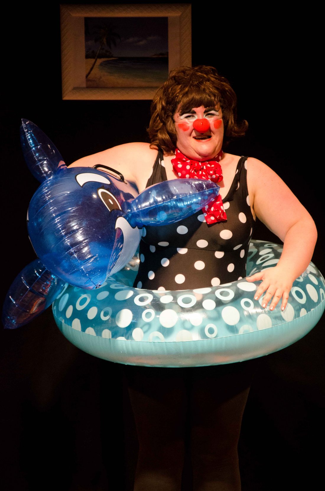 Primeiro espetáculo da atriz, foi criado em 2009, como um número cômico. Com o olhar atento do público infantil, foi se transformando em montagem teatral. Nele, de forma lúdica e interativa, a palhaça aborda a relação com seu corpo fora dos padrões, o sonho de conhecer a praia, que é algo distante para quem, assim como ela, vive no Oeste catarinense e a resiliência de transformar obstáculos em poesia e humor.