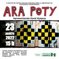O Setor de Artes Visuais da Fundação Cultural de Chapecó realiza, a partir do dia 23 de agosto, a exposição “Ara Poty: Apresentando Karai Hyapua”. A mostra temporária tem como objetivo apresentar o...