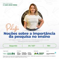 A Biblioteca Pública Municipal de Chapecó Neiva Maria Andreatta Costella realiza, nos dias 5 e 8 de setembro, duas palestras com as temáticas “Noções sobre a importância da pesquisa no ensino” e “Dicas...