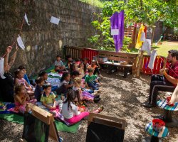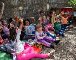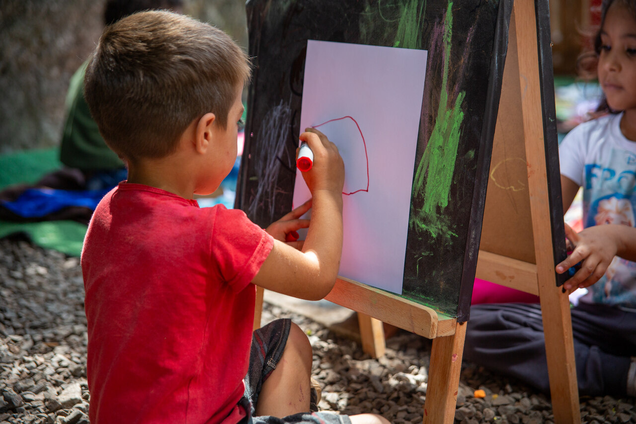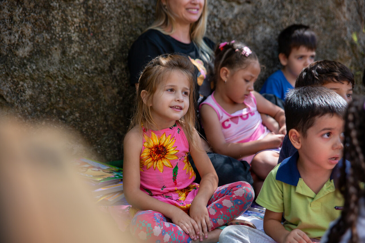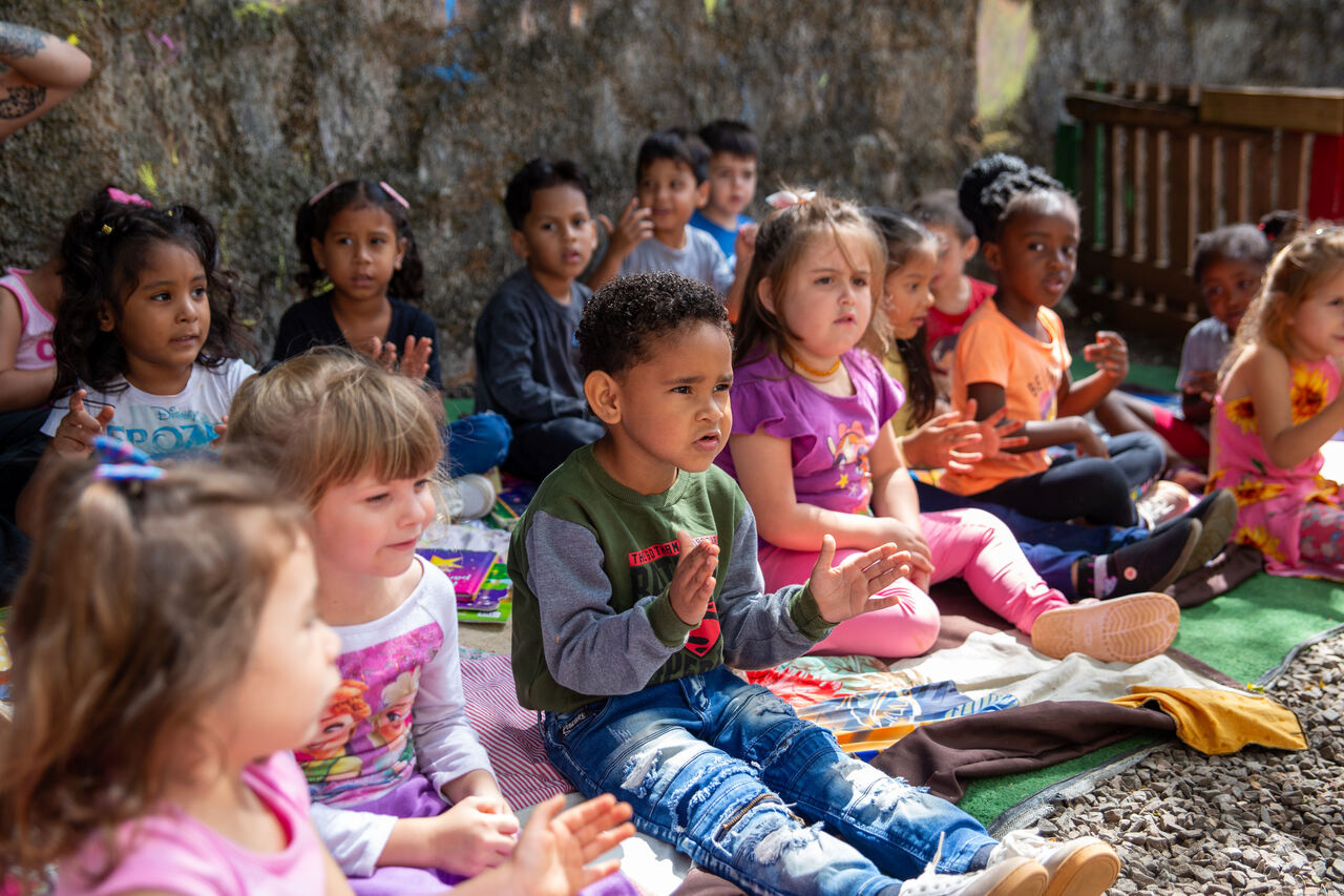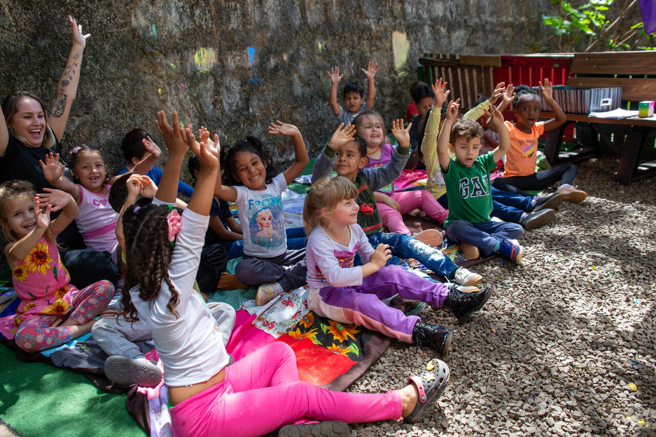 A ação foi organizada no pátio do CEIM com o objetivo de estimular o aprendizado da Língua Inglesa por meio da música, da poesia e de brincadeiras que também fortalecem os laços entre o professor e a turma.
