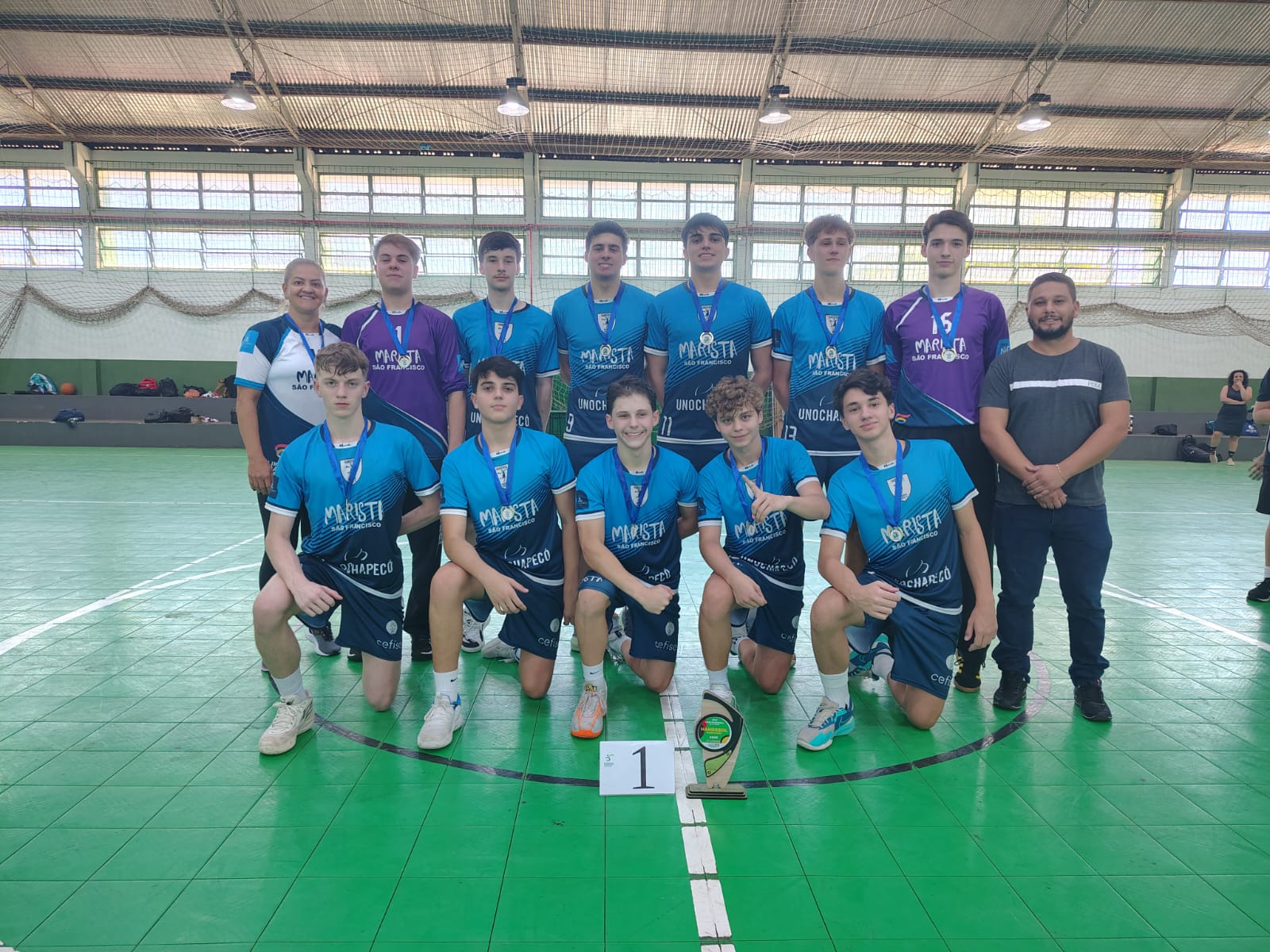 Na última sexta-feira (21), foram definidos os primeiros campeões da modalidade de Handebol na Fase Municipal do JESC. Pela manhã, o Colégio Marista São Francisco conquistou o título na categoria 15 a 17 anos masculino, enquanto à tarde, o Colégio Marista também se destacou e levou o título no 12 a 14 anos feminino.