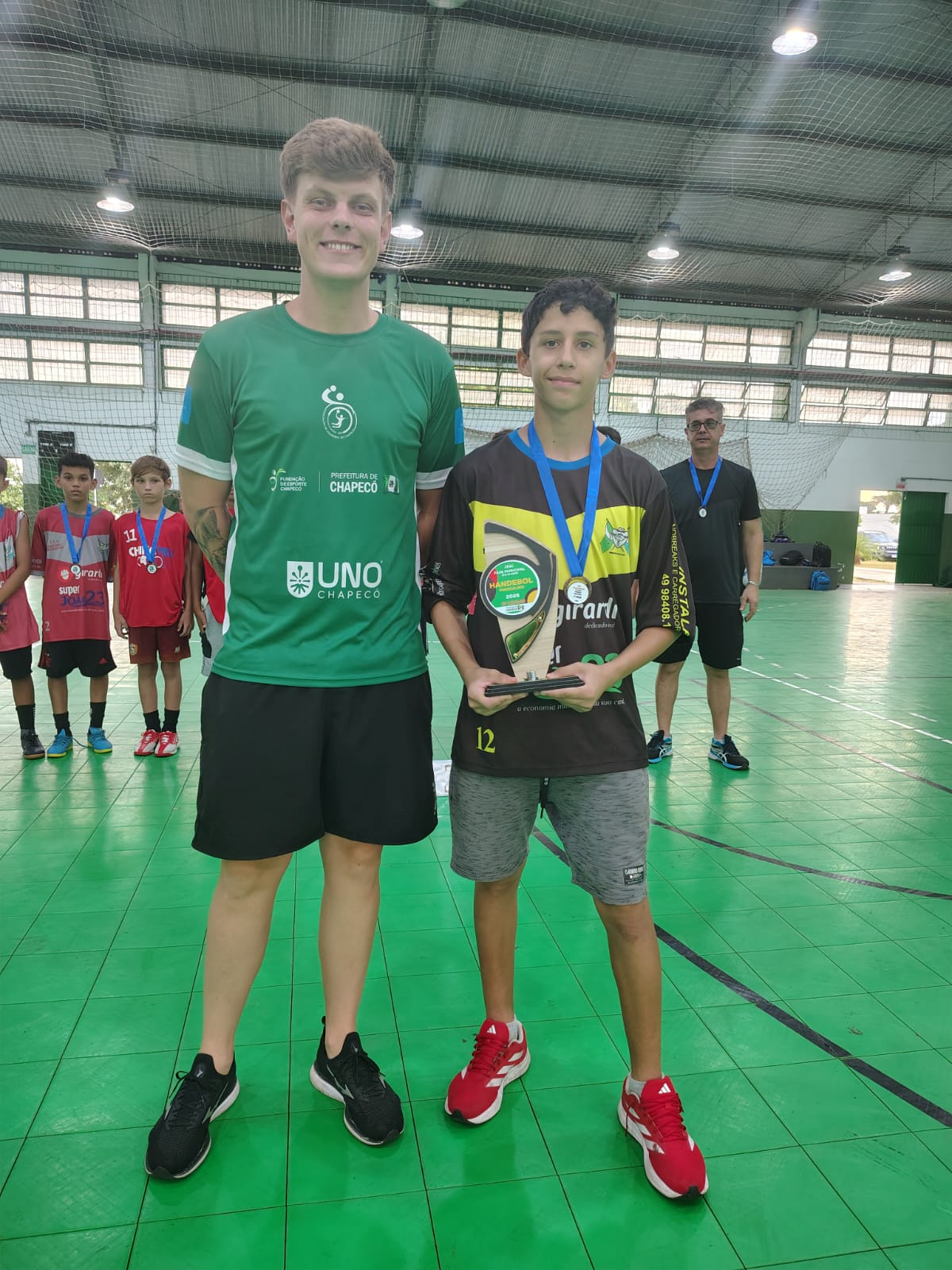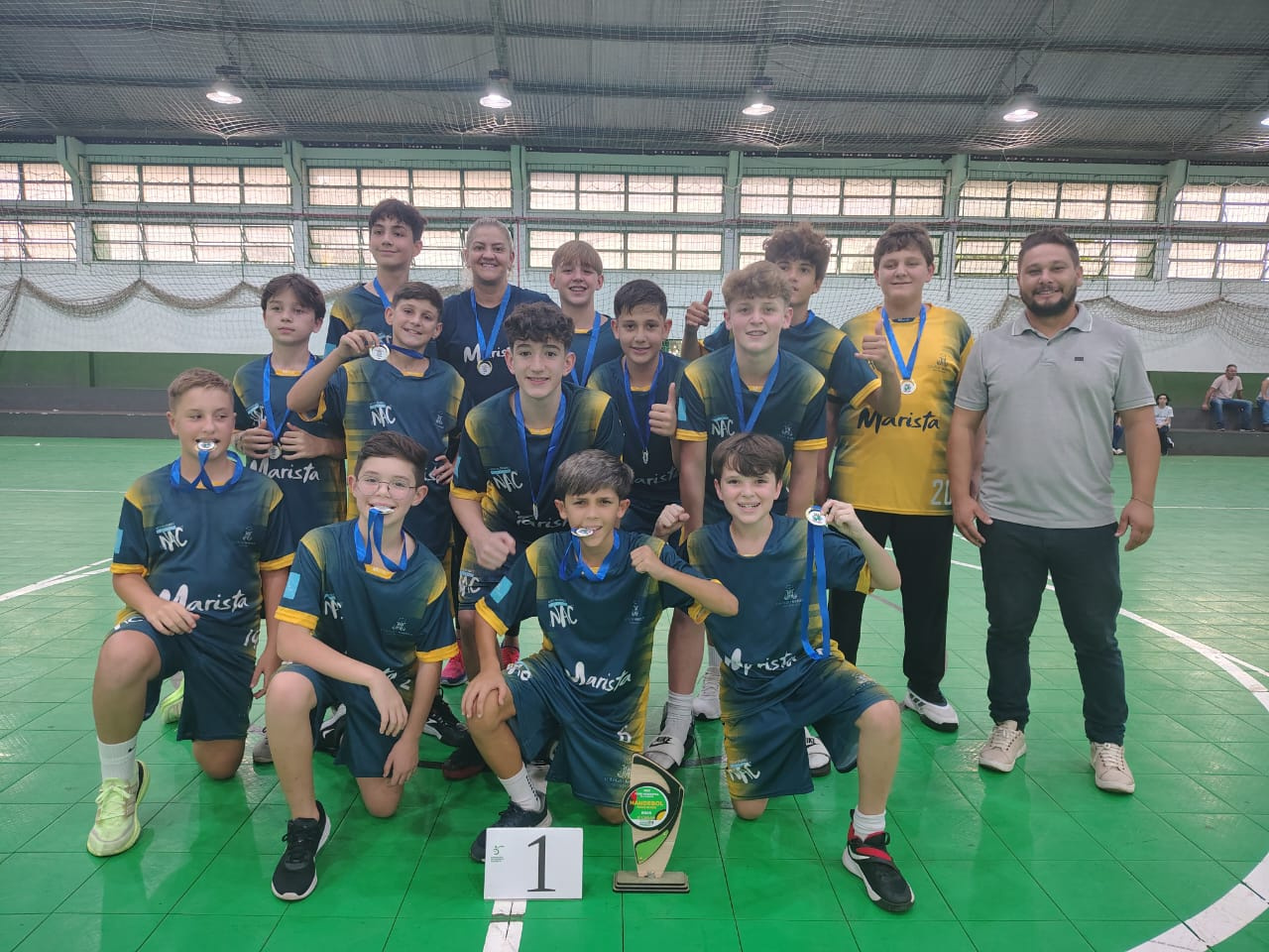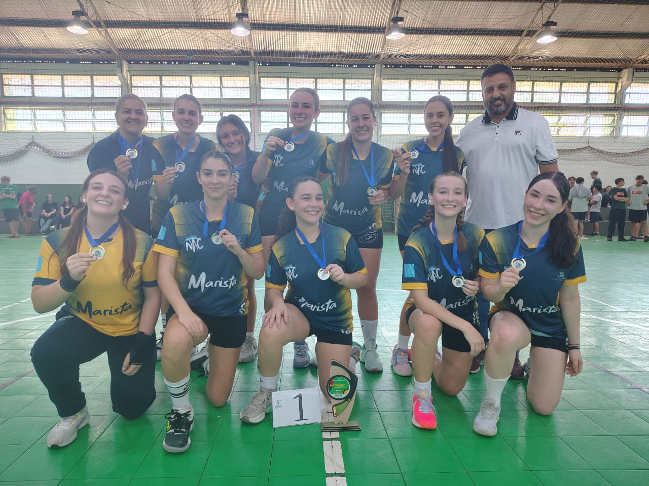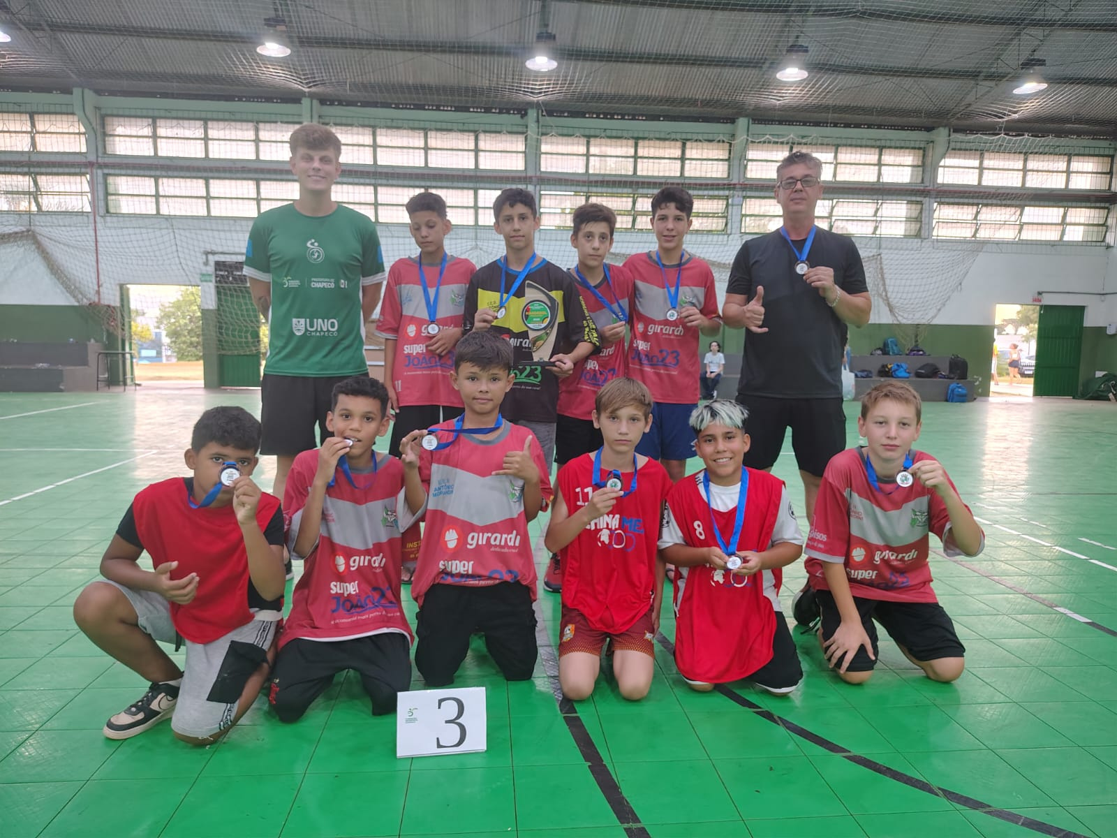 Nesta segunda-feira (24), o Colégio Marista São Francisco teve um dia de grandes conquistas na modalidade de Handebol durante a fase municipal dos Jogos Escolares de Santa Catarina (JESC). Pela manhã, o time feminino da categoria 15 a 17 anos garantiu o título ao vencer a EEB Druziana Sartori na final por 12x05, após derrotar o IFSC nas semifinais por 10x03. A EEB Druziana havia vencido o Colégio Unochapecó por 10x08 na outra semifinal. Na disputa pelo terceiro lugar, a Unochapecó venceu o IFSC por 05x03.