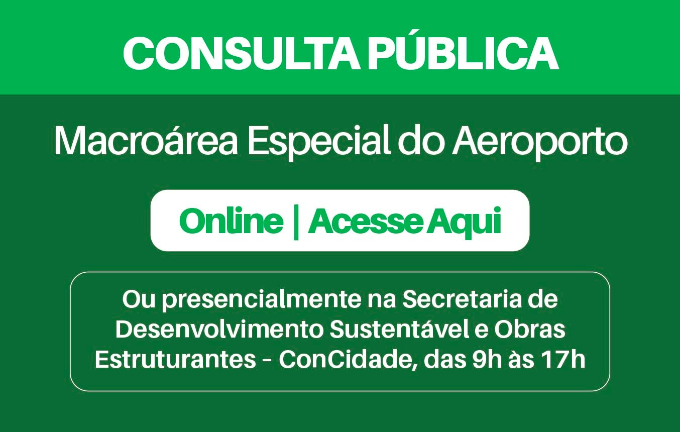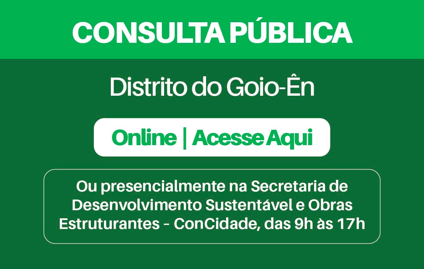 Os links para sugestões são os seguintes: https://tally.so/r/31pgAW (Aeroporto), https://tally.so/r/mYxXeB (Lajeado São José) e https://tally.so/r/3jkX2a (Goio-Ên). Também é possível encaminhar sugestões presencialmente na Secretaria de Desenvolvimento Sustentável e Obras Estruturantes ConCidade, 9h às 17h.