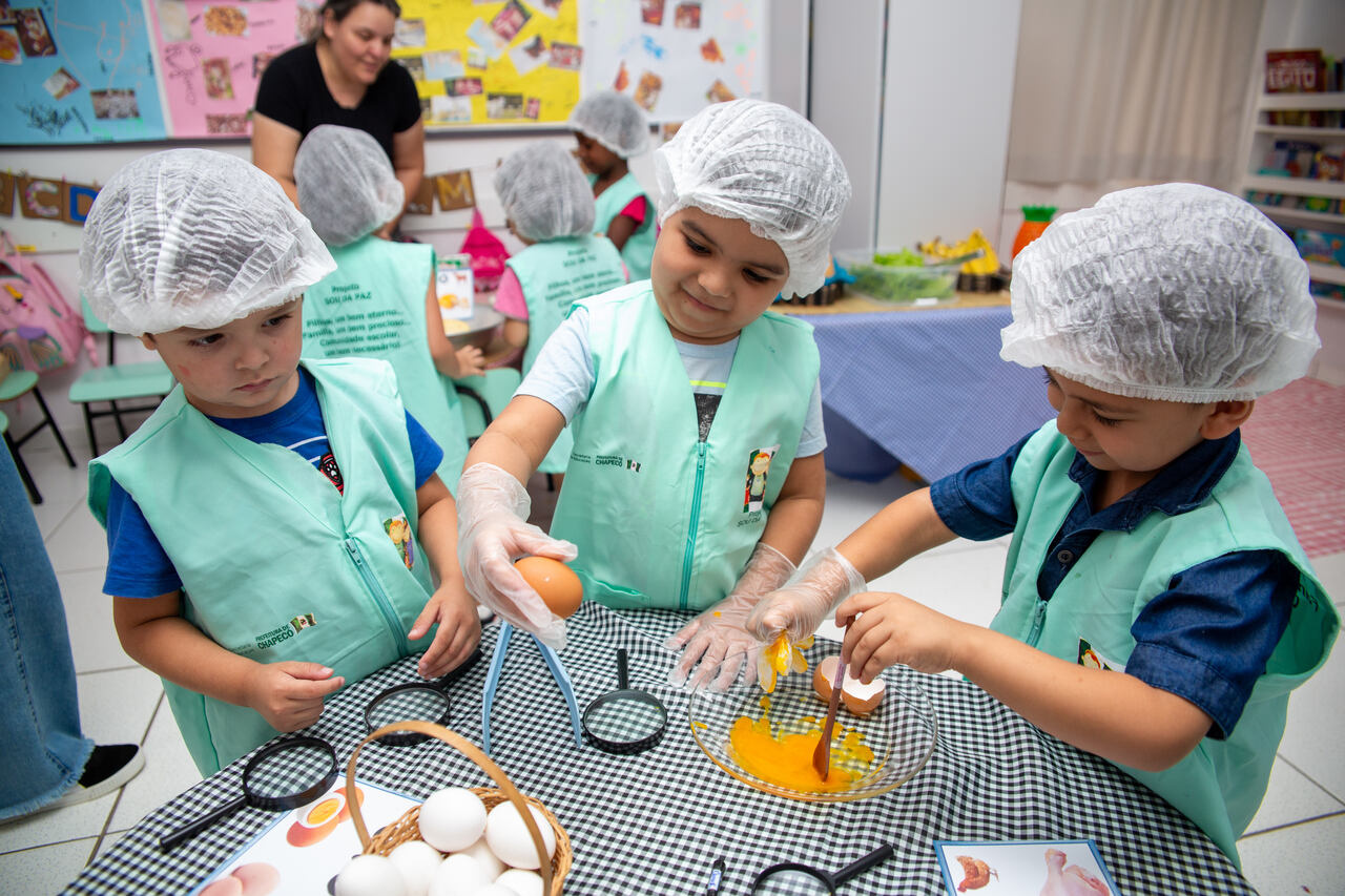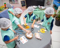 Hoje a gente está aprendendo de onde vem o iogurte, o leite, os ovos, alface e o tomate. O que eu mais gostei foi conhecer os alimentos e suas texturas, disse Arthur Gabriel dos Santos da Silva, de 4 anos.
