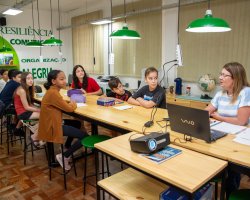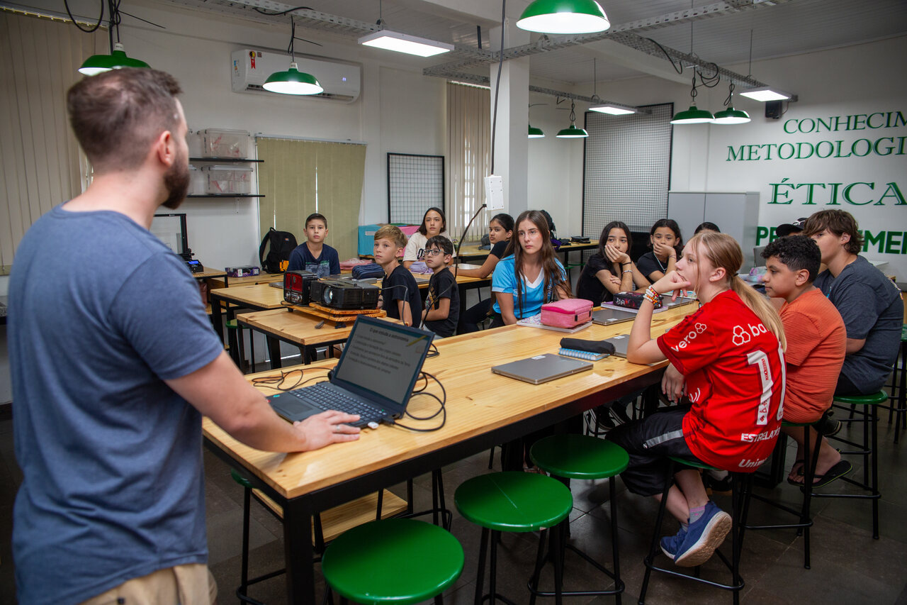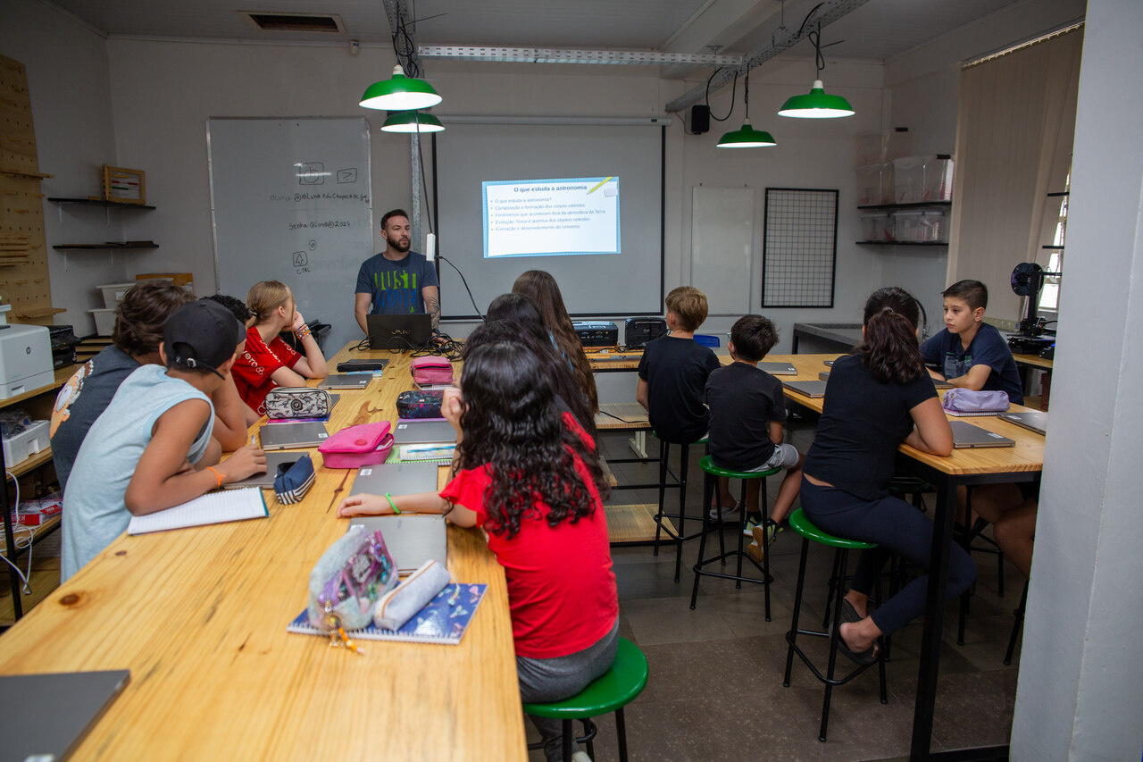 O Clube de Astronomia e Astronáutica Desbravadores do Universo retomou as atividades nesta semana. Foi realizada a primeira aula desta edição nas Salas de Inovação e Transformação do Conhecimento (EITC), das escolas participantes. O objetivo do encontro foi apresentar as ações pensadas para a edição do clube de 2025 e dialogar com os participantes novos e veteranos, tirar dúvidas e conhecer uns aos outros, bem como, a proposta pedagógica do projeto.