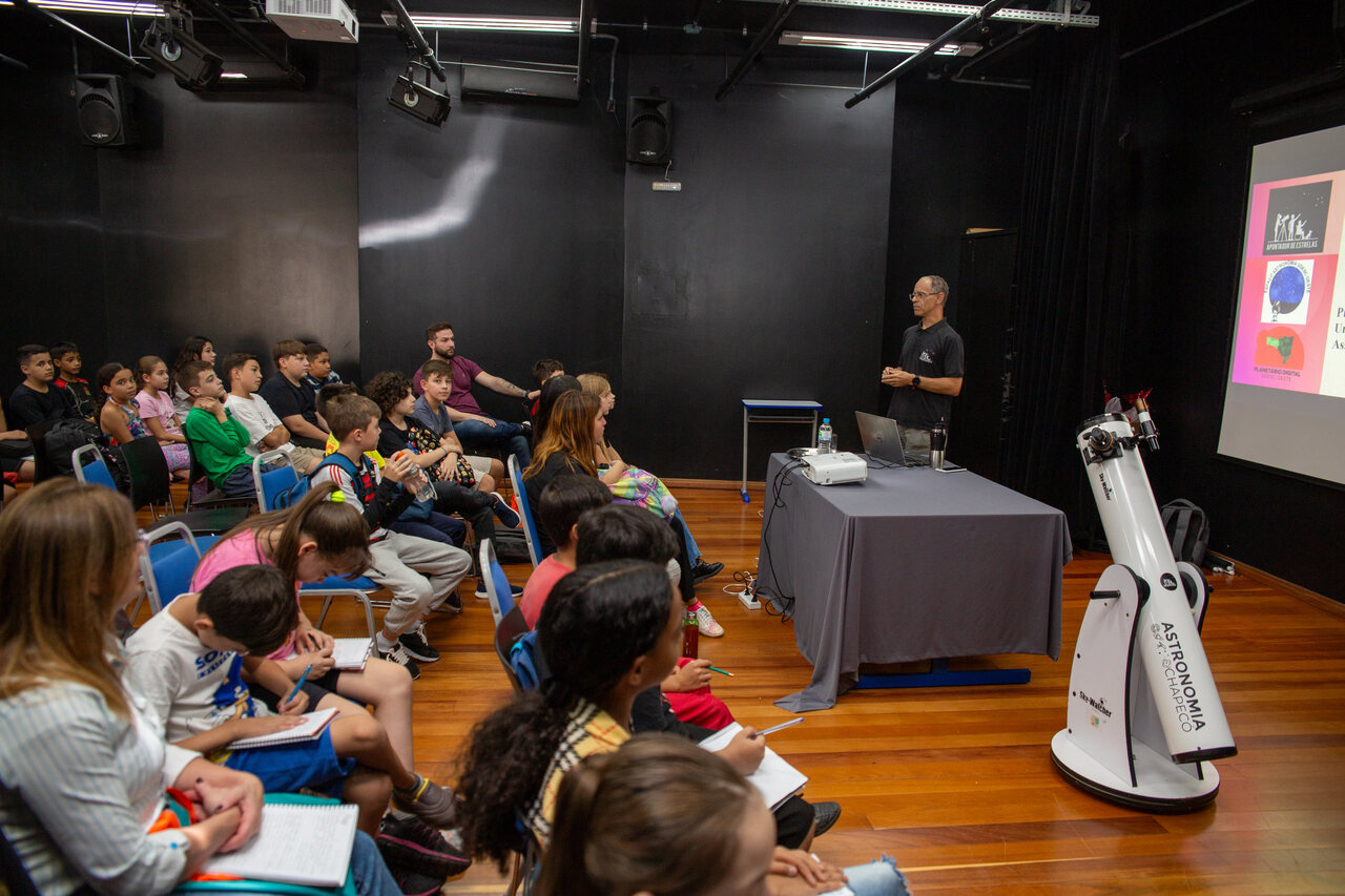 Após a entrega, foi ministrada uma aula pelo Professor Doutor em Astrofísica, Daniel Raimann, da Universidade do Estado de Santa Catarina (UDESC) e membro fundador da Associação Apontador de Estrelas. Ele explicou sobre astronáutica, astronomia amadora e astronomia profissional, além de dar dicas de estudo e tirar dúvidas dos participantes.