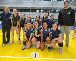 A equipe feminina do Colégio Marista conquistou, nesta quinta-feira (10), o título da Fase Municipal do JESC 15 a 17 anos na modalidade de Voleibol. As partidas finais ocorreram no Ginásio Ivo Silveira, com a participação de quatro equipes na disputa.