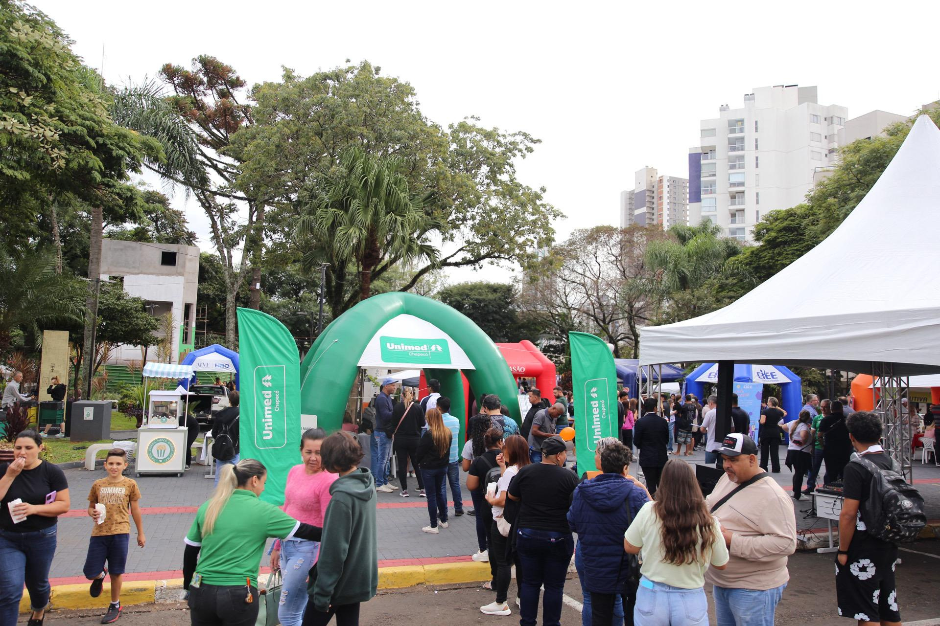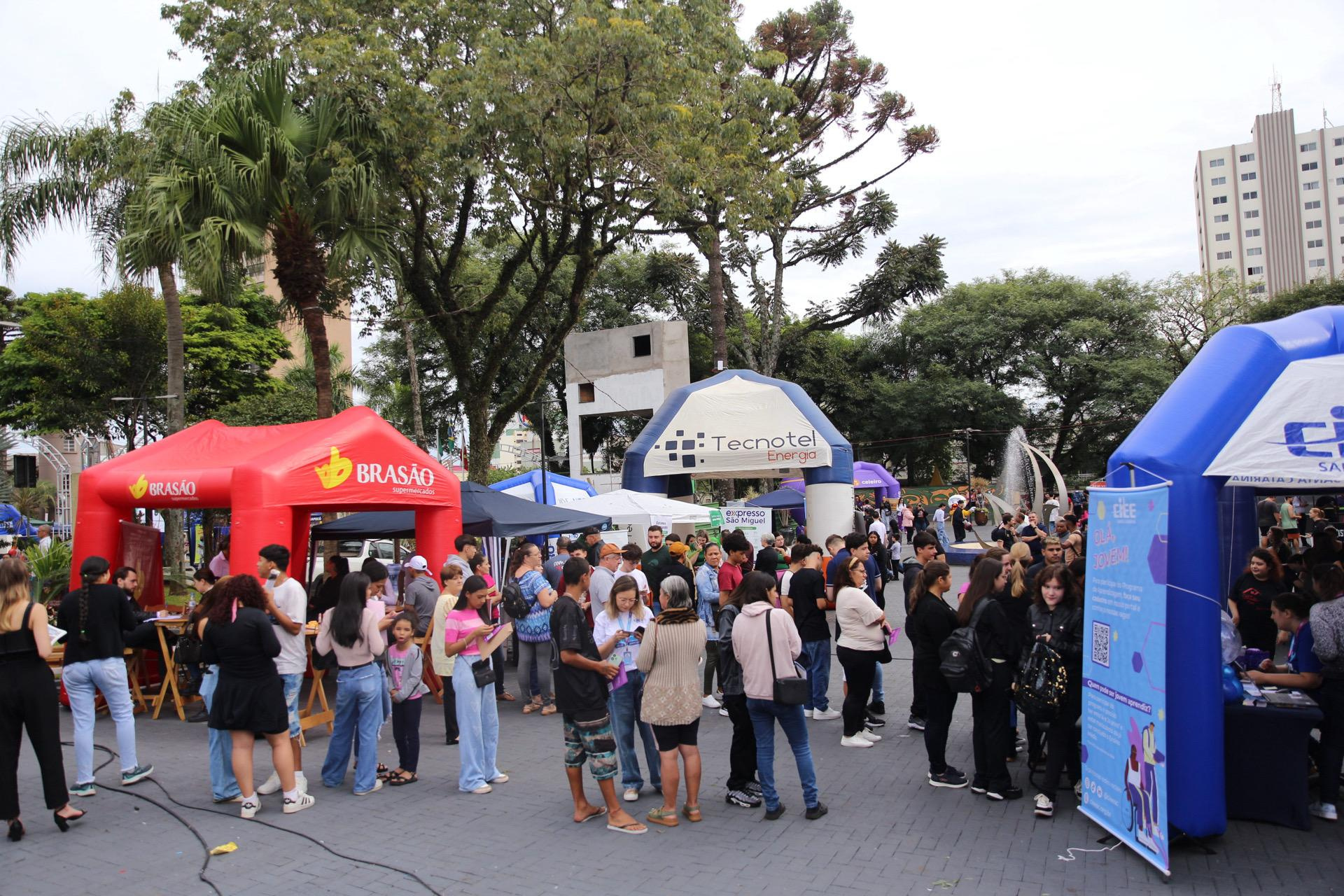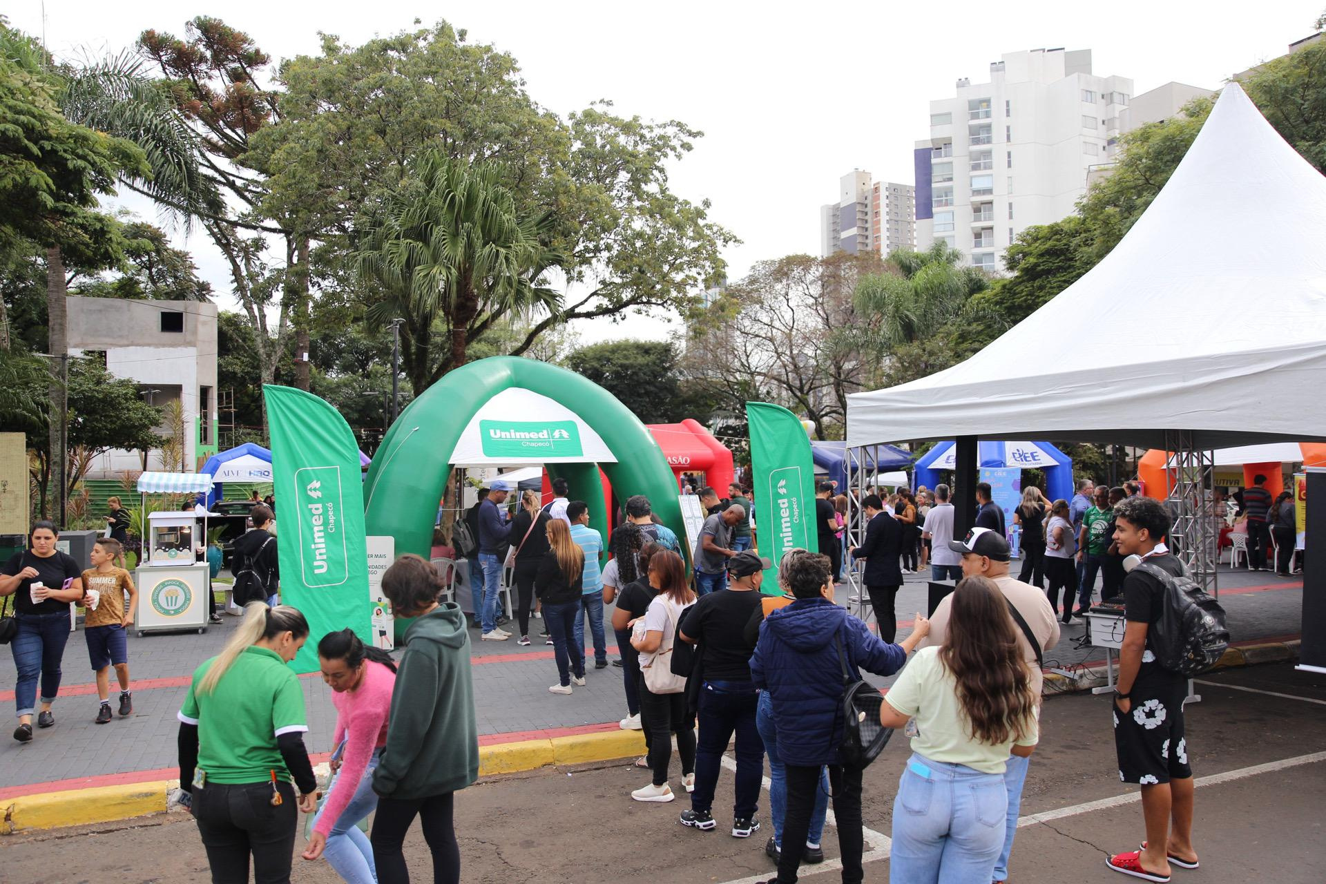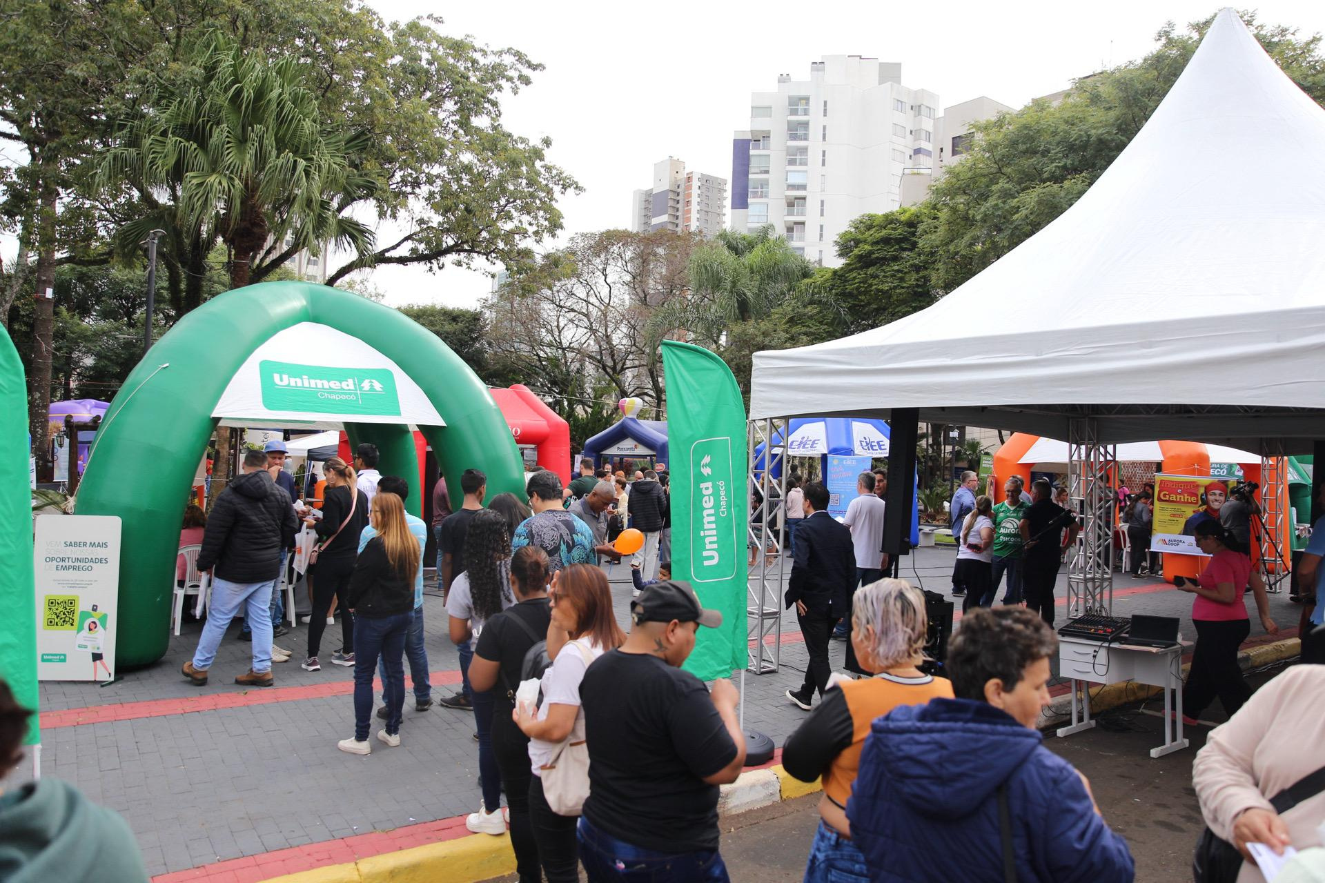 O Empreende & Emprega Chapecó, evento da Prefeitura Municipal, realizado neste sábado, na Praça Coronel Bertaso, gerou oportunidades de trabalho e estágio para centenas de pessoas.