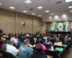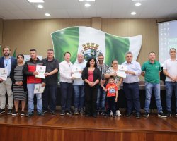 A Prefeitura de Chapecó, por meio da Diretoria de Habitação e Regularização Fundiária, realizou nesta terça-feira (15), solenidade de entrega de Registros de Matrícula dos Imóveis regularizados nos núcleos urbanos Lions Club, Rotary Club e Ecoparque, e das Certidões de Regularização Fundiária (CRFs) do núcleo Tietê. Os atos de entrega foram realizados no auditório da prefeitura.