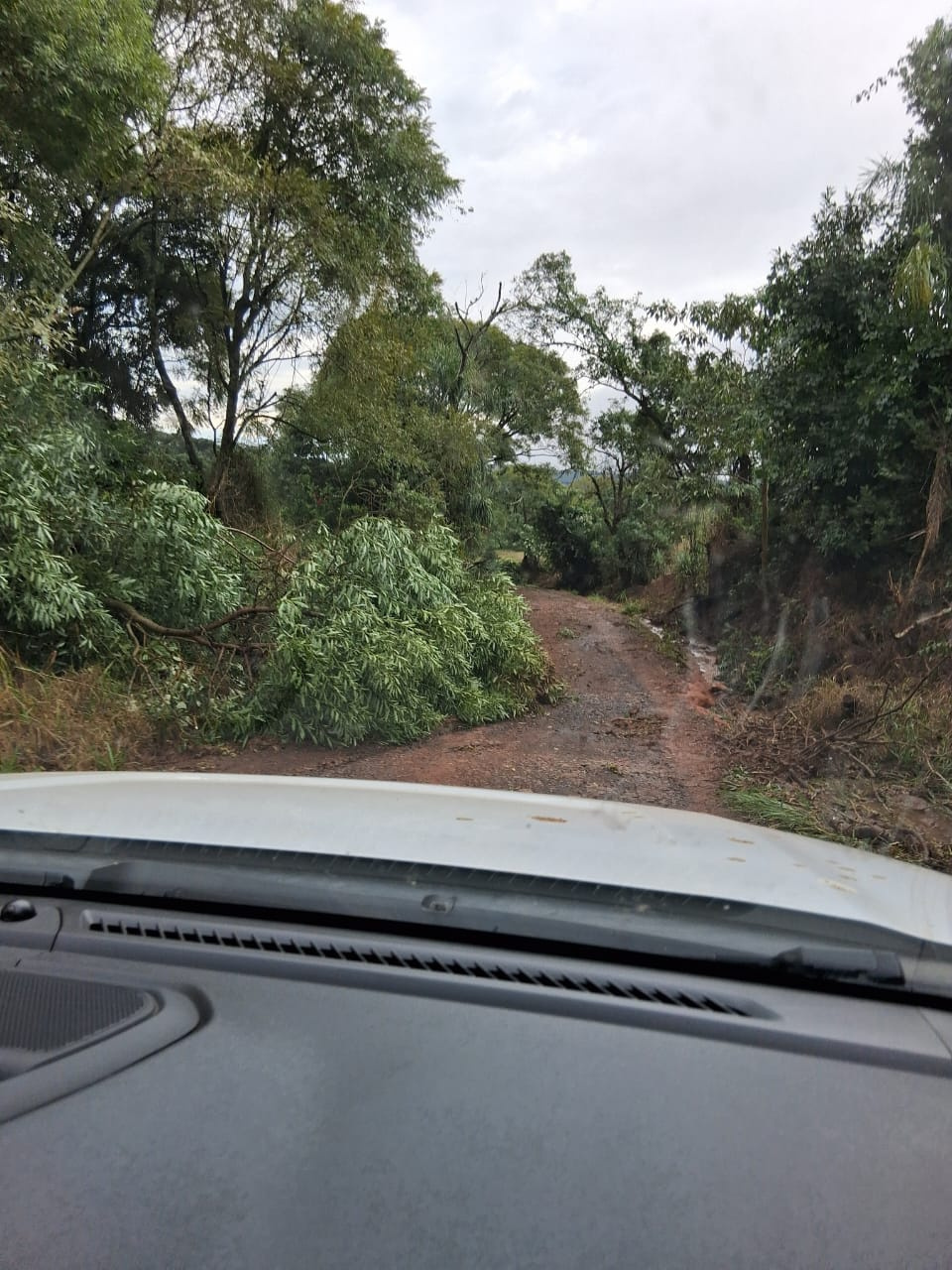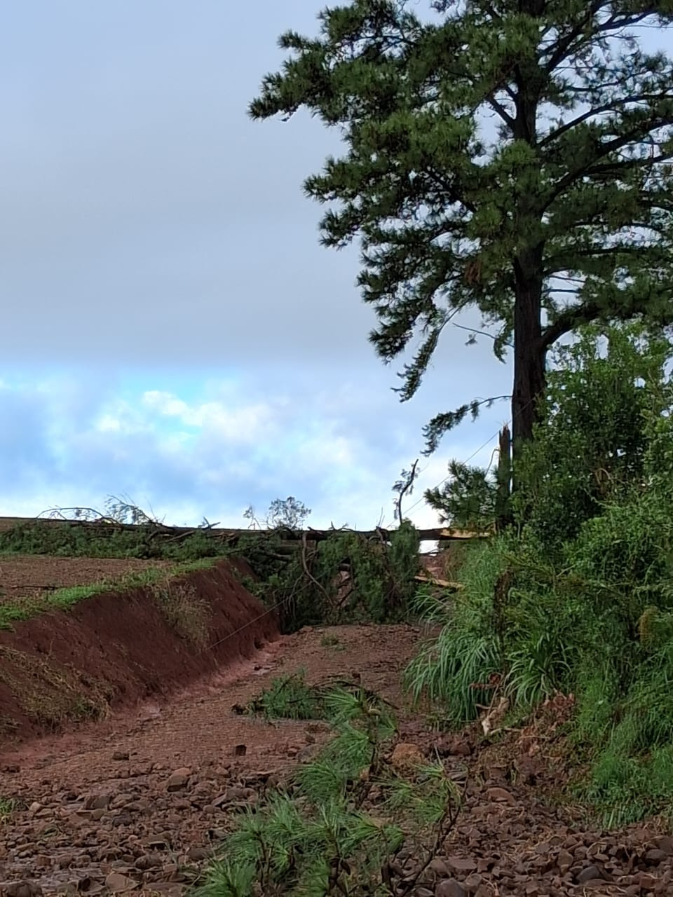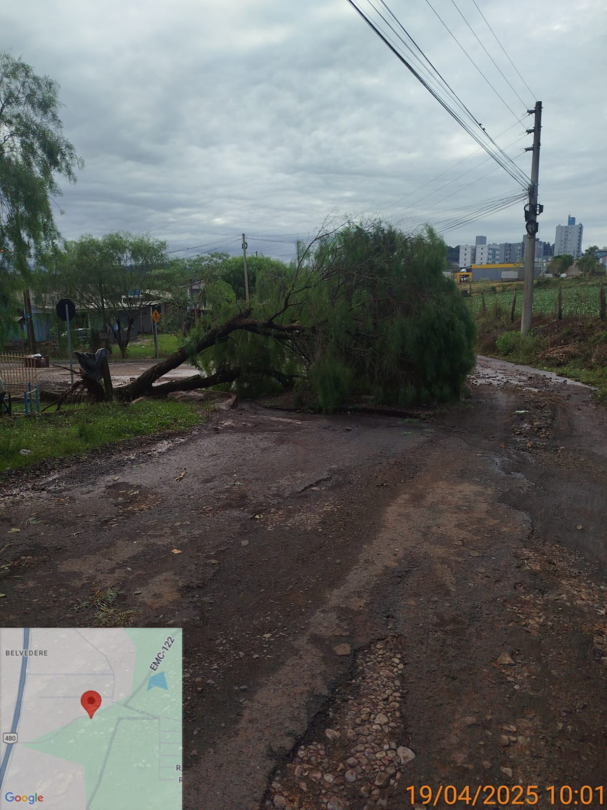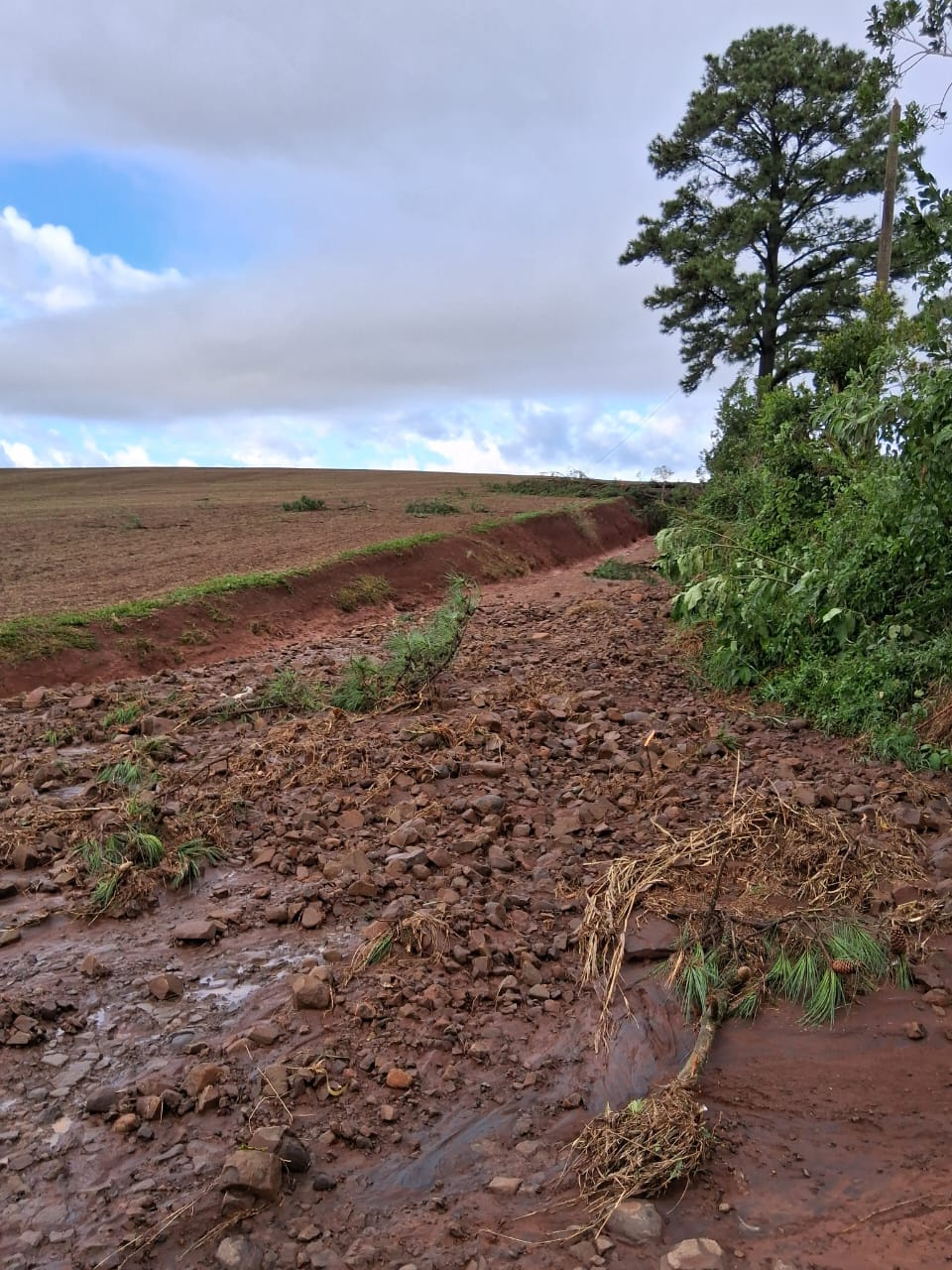 Há dezenas de árvores caídas, placas e um aviário destruído. A região Norte do município foi mais atingida. Tem estragos no bairro Desbravador e há bloqueios nos acessos das linhas Sarapião e Tormen. Os servidores municipais estão trabalhando na desobstrução das vias.