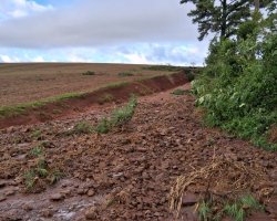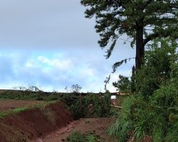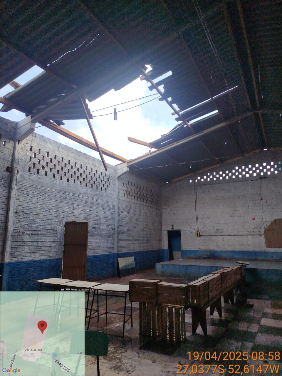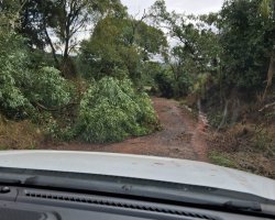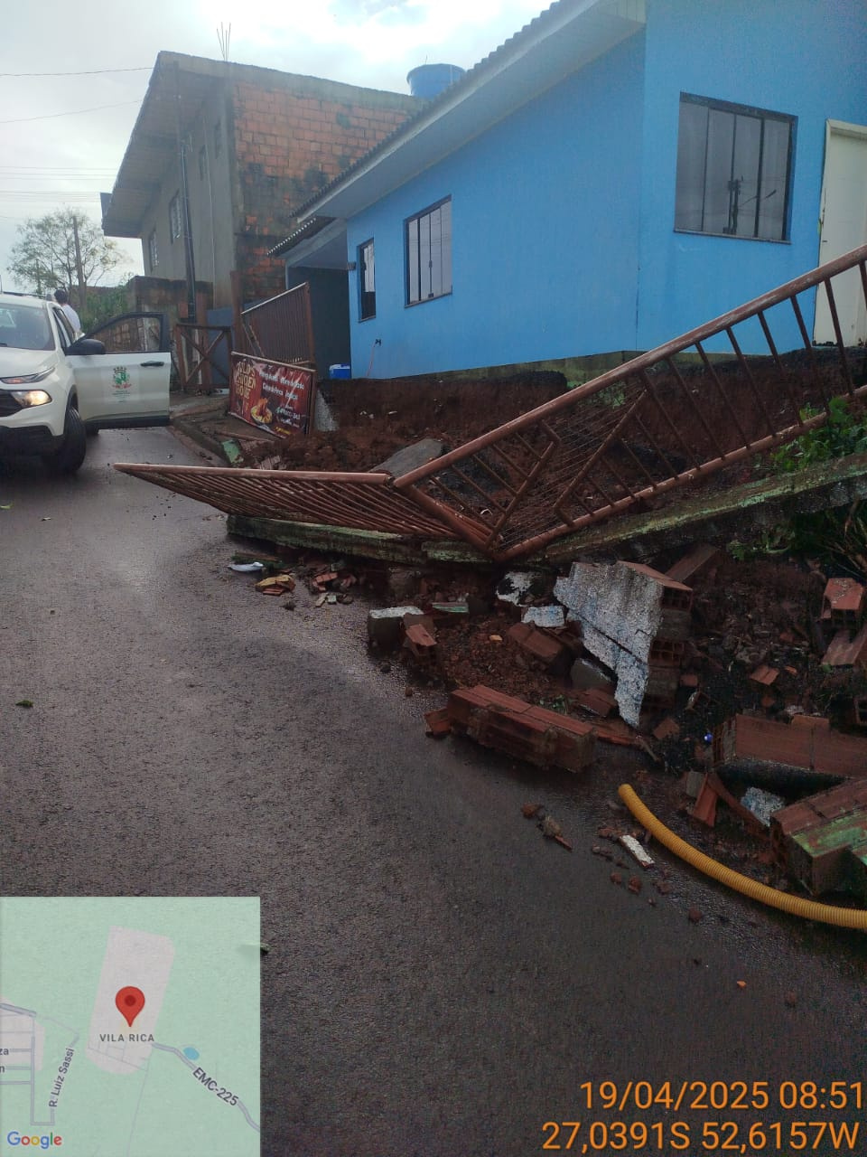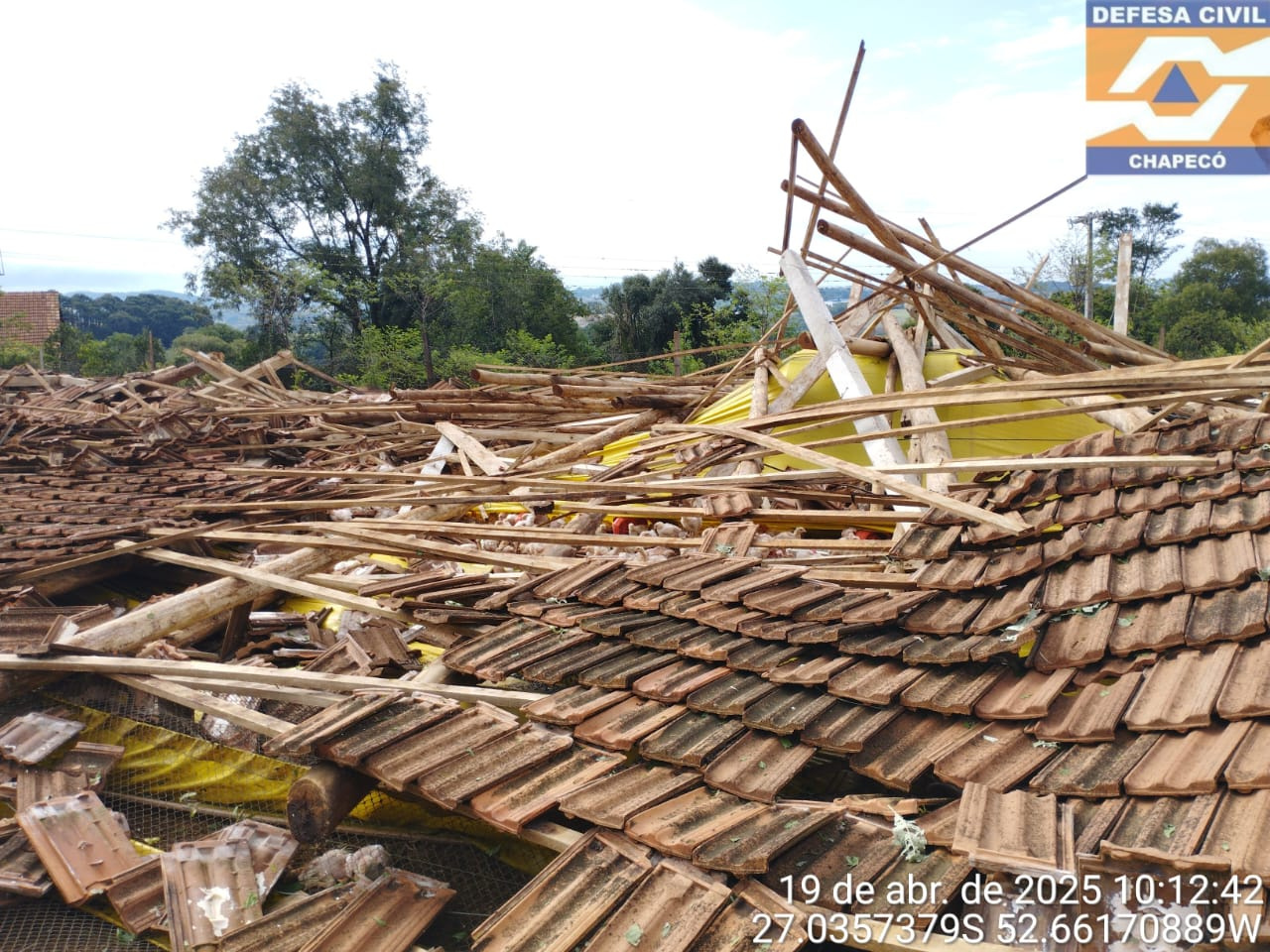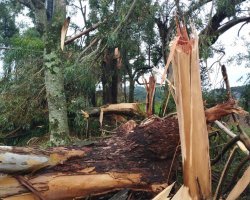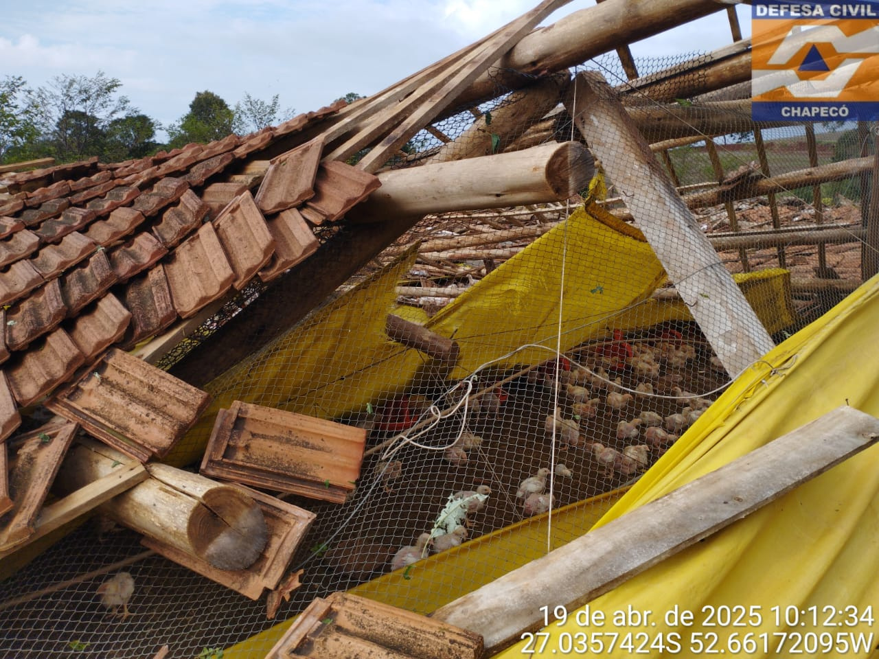Há dezenas de árvores caídas, placas e um aviário destruído. A região Norte do município foi mais atingida. Tem estragos no bairro Desbravador e há bloqueios nos acessos das linhas Sarapião e Tormen. Os servidores municipais estão trabalhando na desobstrução das vias.