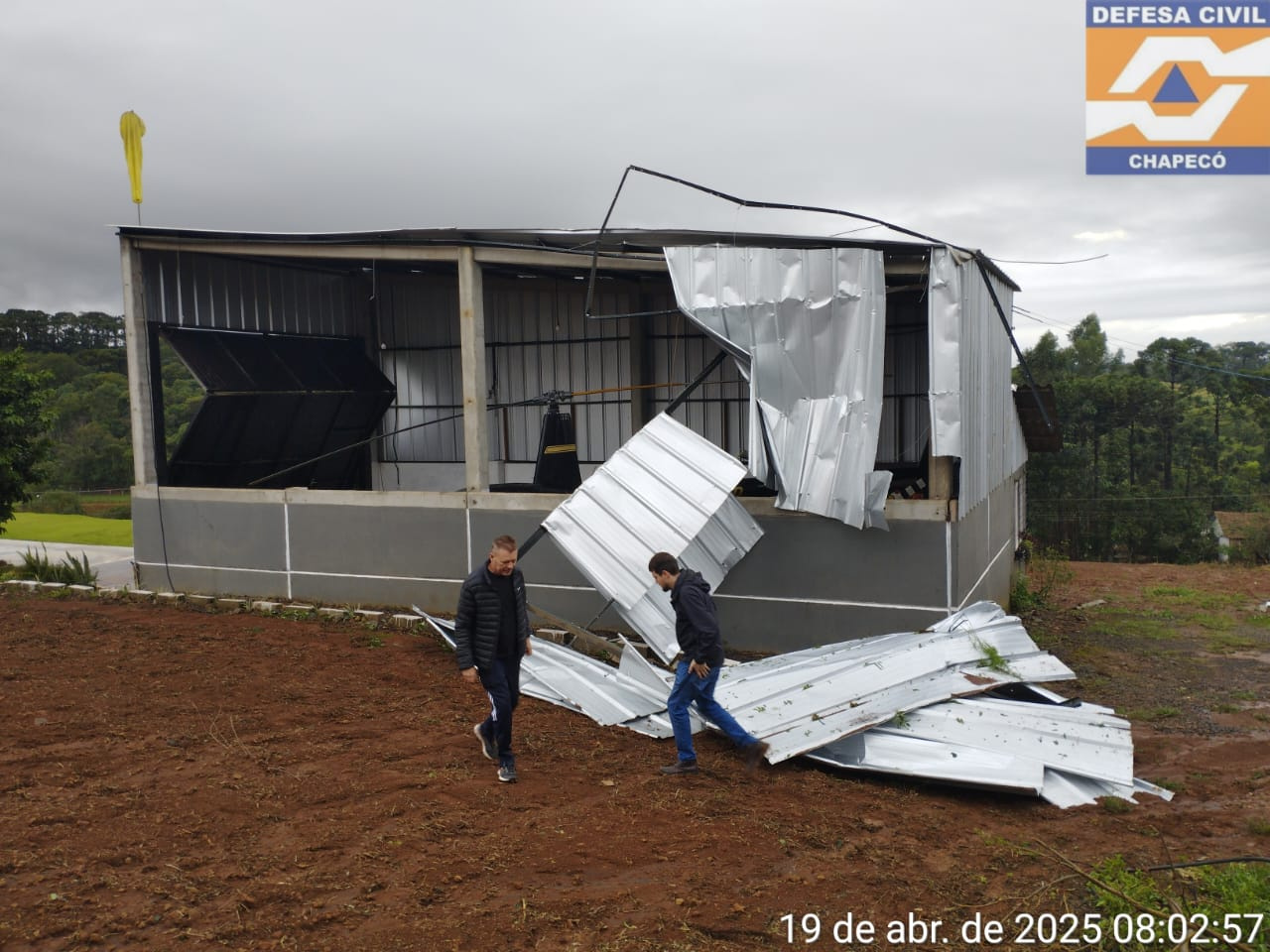 De acordo com o coordenador municipal da Defesa Civil, Walter Parizotto, foram atingidas 59 residências, mas não há feridos e nem desalojados. A Defesa Civil atuou na entrega de lonas e, durante o dia, os moradores devem trabalhar nos consertos.