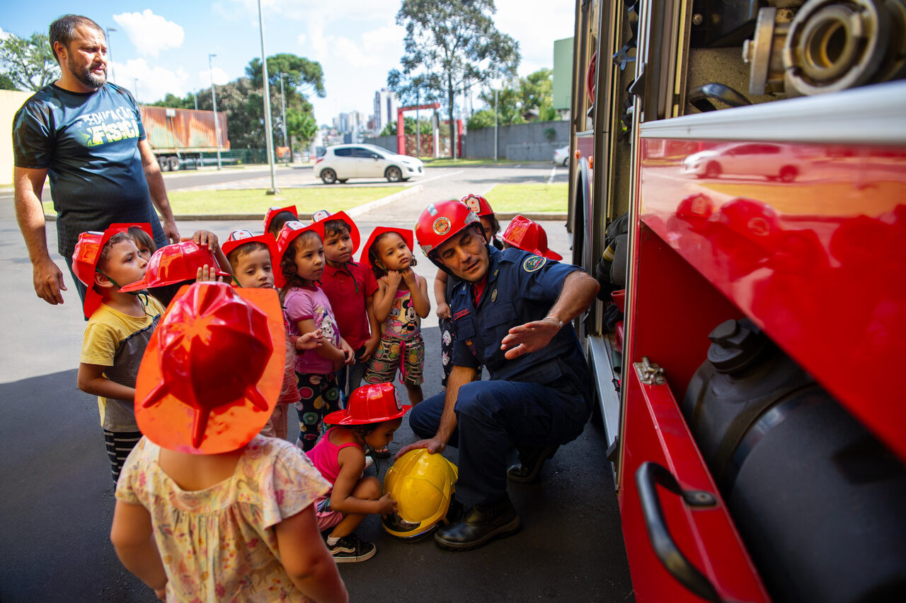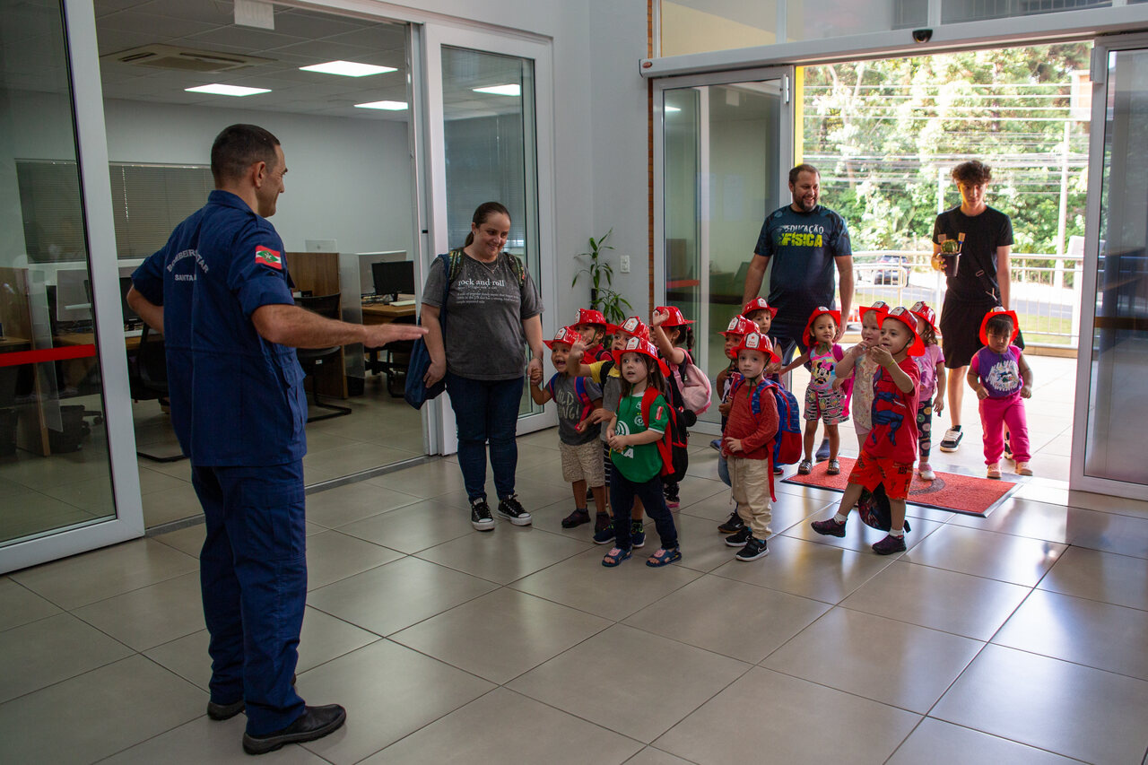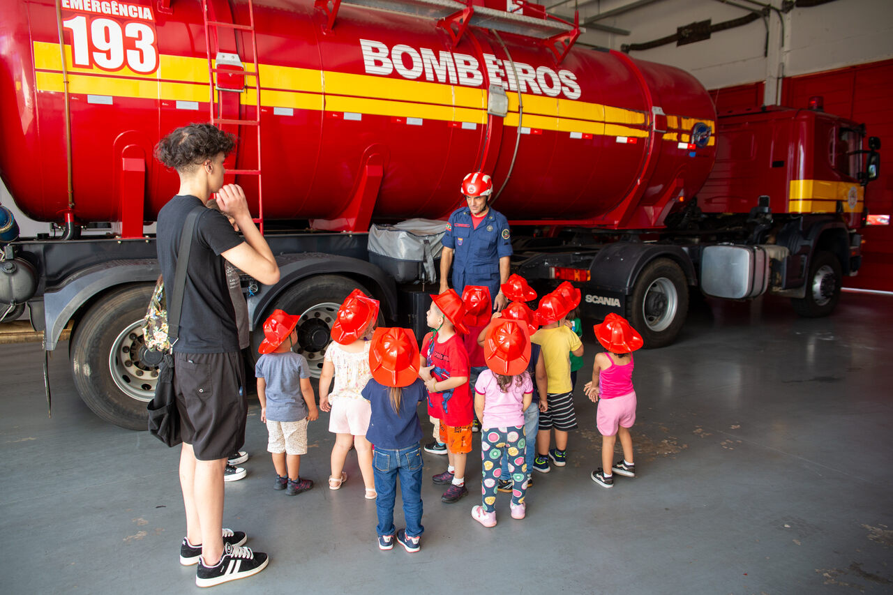 A professora Luciane explicou como surgiu a ideia de levar a turma para conhecer o Batalhão do Corpo de Bombeiros. O interesse das crianças é o fio condutor do nosso trabalho, por isso, após realizarmos várias atividades para compreender sobre a profissão do bombeiro, os instrumentos utilizados por eles e ações realizadas a turma manifestou o desejo de conhecer pessoalmente esses profissionais e o seu local de trabalho, disse.