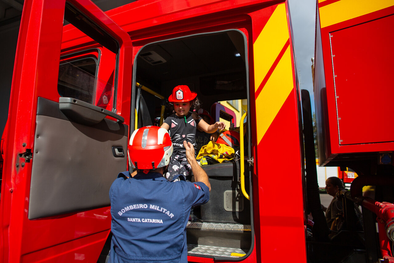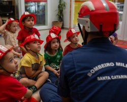 As crianças do maternal, do Centro de Educação Infantil Municipal Brincar e Crescer, sob responsabilidade da professora Luciane Rauber Scussiato, realizaram juntamente com os professores uma visita de estudos ao 6º Batalhão de Bombeiros Militar de Chapecó.