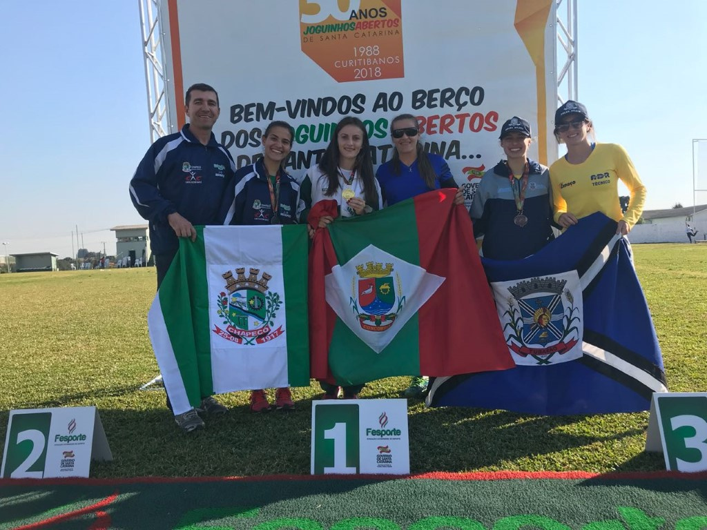 Já são nove as medalhas que Chapecó conquistou em dois dias dos Joguinhos Abertos de Santa Catarina que está sendo realizado em Curitibanos. A estreia do futebol feminino, atual campeão e que busca o bicampeonato foi avassaladora e traz boas perspectivas para Chapecó.