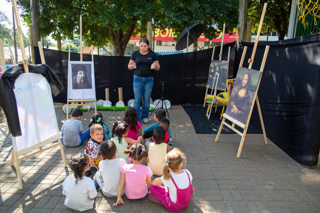 Uma turma de pré-escola, da EPC Cyro Sosnosky, está investigando sobre as obras de arte. O objetivo é observar e compreender a intenção dos artistas ao pintar seus quadros, além de refletir sobre os sentimentos que são despertados em cada observador.