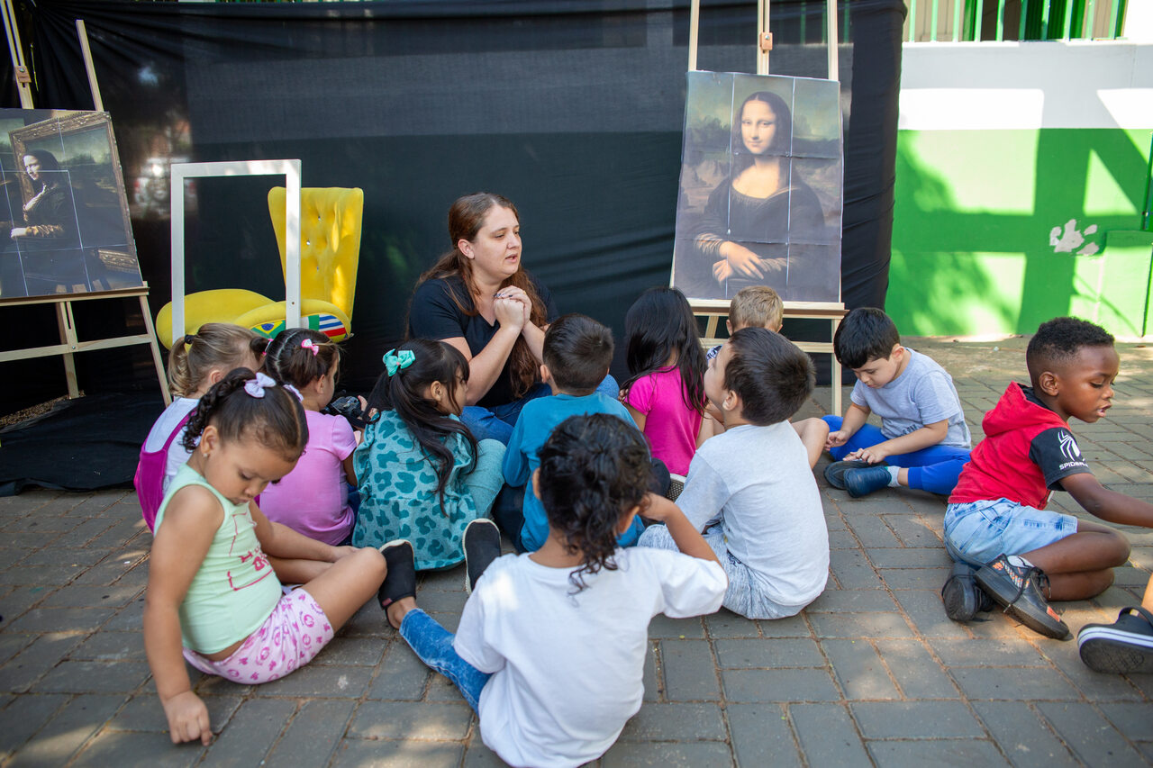 A professora regente da turma, Andressa Kaminski, explicou o objetivo da vivência. Começamos trabalhando as obras de Tarsila do Amaral, por causa da cultura brasileira, e ao longo das ações desenvolvidas, as crianças começaram a questionar sobre como as pessoas se expressavam e o que cada uma sentia ao olhar os quadros. Para ajudá-los na compreensão destas dúvidas, eu propus que observássemos outra obra, desta vez estrangeira, a Mona Lisa e conversássemos sobre ela, disse.