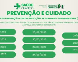 A Prefeitura de Chapecó, por meio da Secretaria de Saúde, realiza ações de testagem rápida para HIV, sífilis, hepatite B e hepatite C, com foco na prevenção às Infecções Sexualmente Transmissíveis (ISTs) HIV/AIDS. Nesta quarta-feira (30), terá a terceira ação do ano, no Terminal Urbano de Transporte Coletivo, junto a sede da ASAPREV, localizada na Rua Clevelândia, Centro de Chapecó. O horário de atendimento é das 13h às 17h.