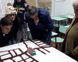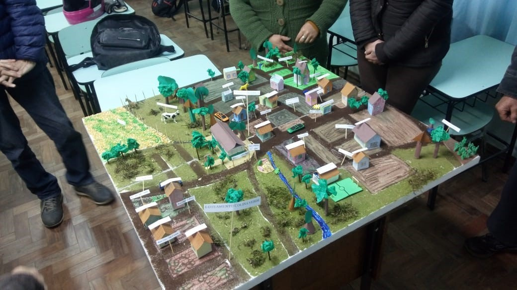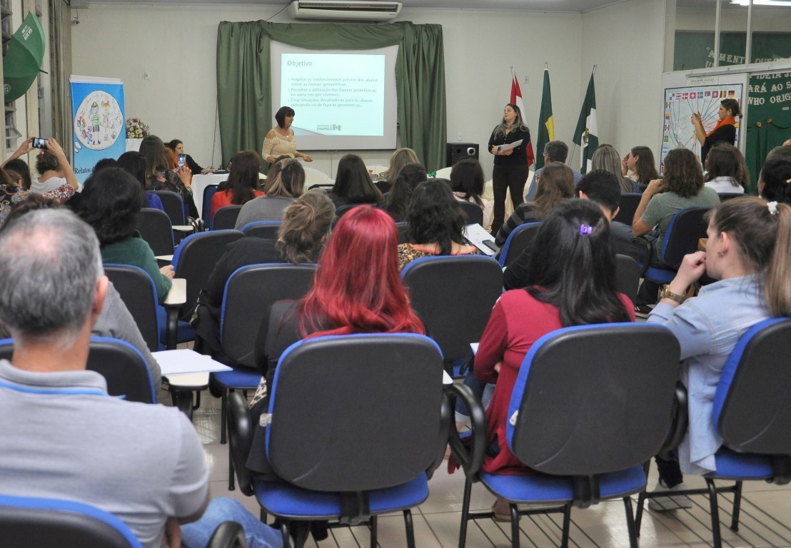 Um dos relatos foi o das professoras Eleia e Sabrina, que apresentaram aos colegas a experiência realizada na Escola Básica Municipal Vila Rica. Para trabalhar formas geométricas, conteúdo curricular, surgiu a ideia de construir maquete com letramento, saneamento, cores, matemática, zona urbana e zona rural. De acordo com Eléia Maria Riva, Professora Instrutora de Libras na EBM Vila Rica Fases I e II, o a troca de experiência entre os professores é muito importante. O Projeto Ideias além do Giz é uma proposta excelente porque são experiências e ideias bem significativas que podemos ter como base para recriarmos novas atividades agregando muito ao nosso trabalho, comentou. Sabrina Graziele Marca, Professora Regente das fases I e II na EBM Vila Rica, destacou que as boas ideias precisam ser levadas para outras pessoas, para que aproveitem em suas escolas e dia a dia de trabalho. Foi um desafio lançado e nós nos sentimos motivadas a realizar este trabalho, apresentar aos colegas uma atividade nossa que deu certo é muito gratificante, finalizou.