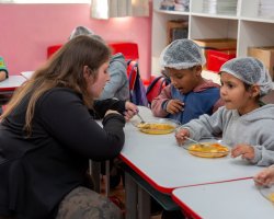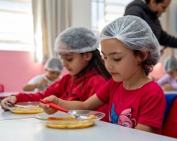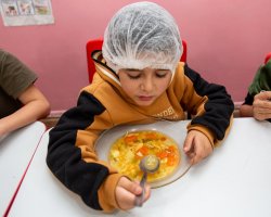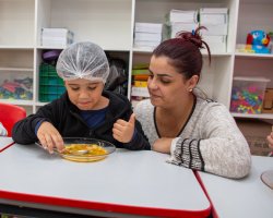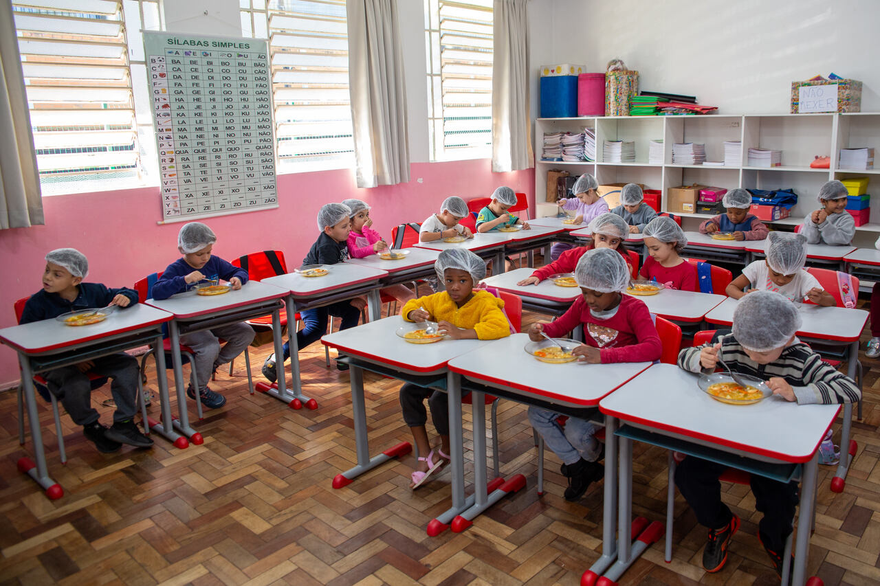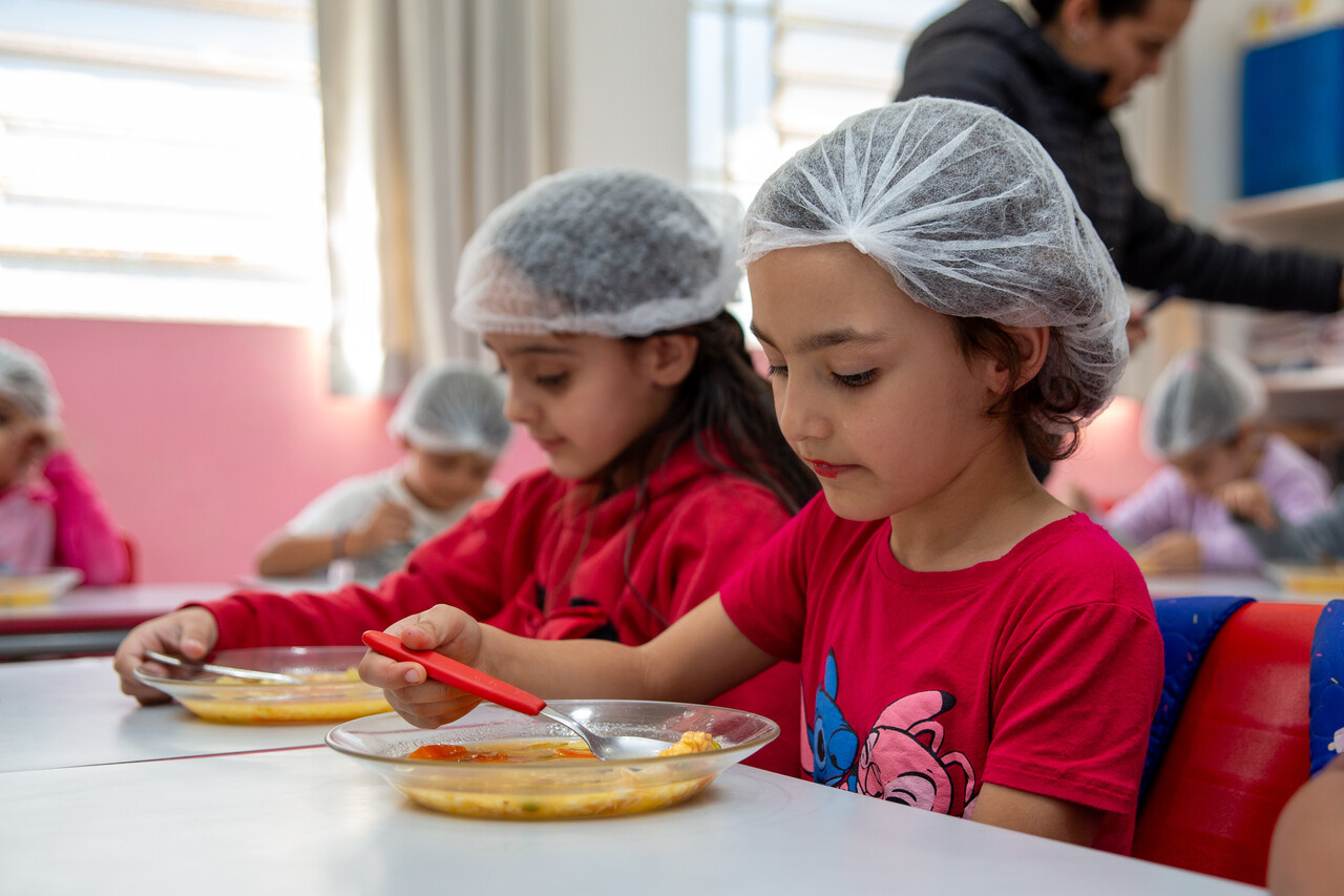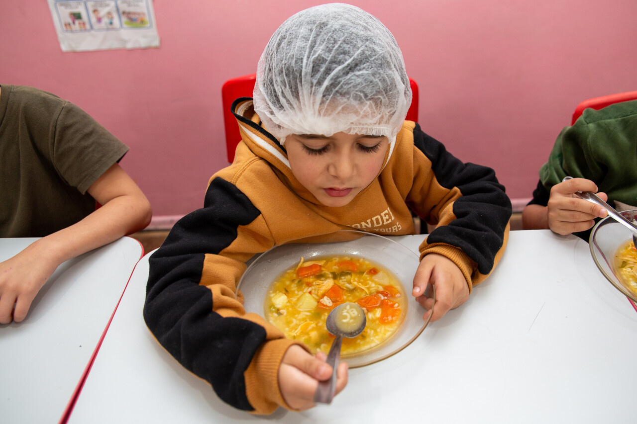 A partir desse cenário, a turma foi convidada pela professora para degustar uma sopa de letrinhas. A professora Patrícia comentou acerca do desenvolvimento da atividade. Nós utilizamos várias estratégias para aprender as letras e realizar tentativas de escrita. Hoje, com a degustação da sopa de letrinhas, estamos concretizando mais uma ação, na qual as crianças conversaram sobre os ingredientes que eles encontraram na sopa, quais eles consomem em casa, observaram as letras presentes na sopa e pensaram sobre quais outras palavras eles conhecem que iniciam com as letras presentes na sopa, explicou.