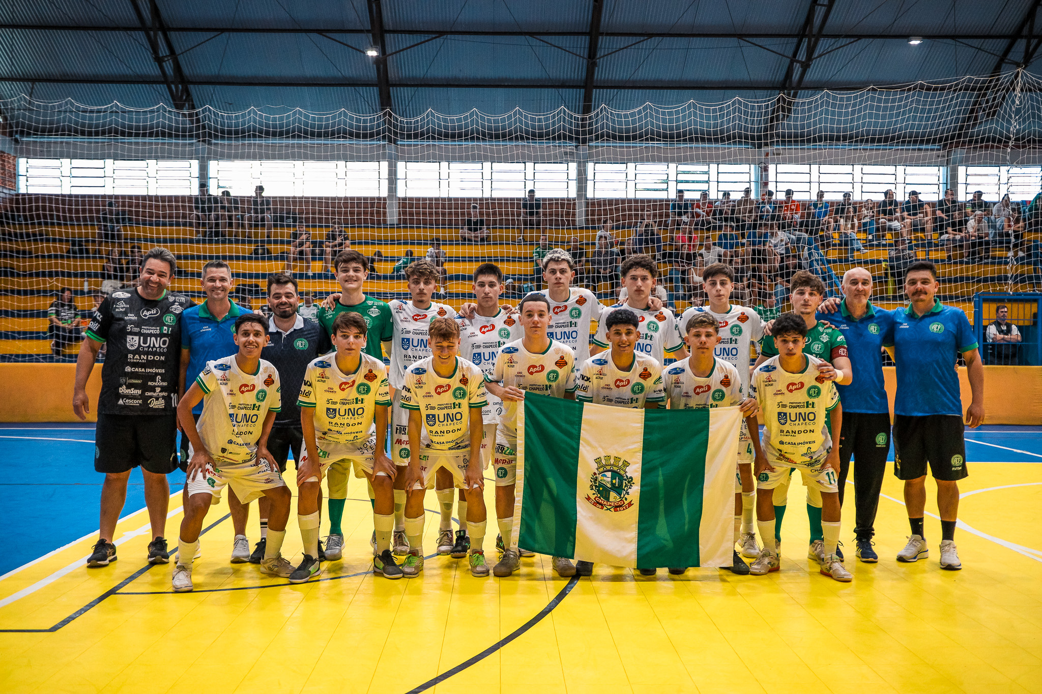 Dois jogos, duas vitórias. As equipes da Prefeitura de Chapecó/Chapecoense/Unochapecó levaram a melhor sobre o Criciúma nos campeonatos sub-16 e sub-18 do Campeonato Estadual, promovidos pela Federação Catarinense de Futsal. Os duelos foram disputados neste sábado (3/5), no ginásio da AABB, em Chapecó (SC). Verdão das Quadras vence nas categorias sub-16 e sub-18 do Campeonato Catarinense.