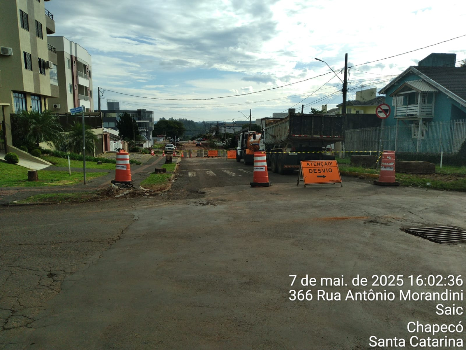 A Prefeitura de Chapecó informa que a rua Uruguai foi fechada nesta quarta-feira (7), entre as ruas Antônio Morandini e Iguaçu, para obras de alargamento. De acordo com a empresa responsável pela obras, a Planaterra, nesta quarta-feira foi realizada a concretagem de uma caixa do sistema de drenagem no meio da via e, por segurança, foi optado pelo bloqueio. À noite será liberado apenas o tráfego local. Amanhã os trabalhos prosseguem.