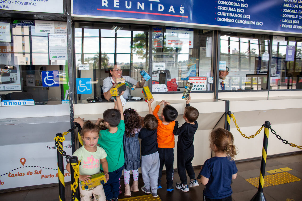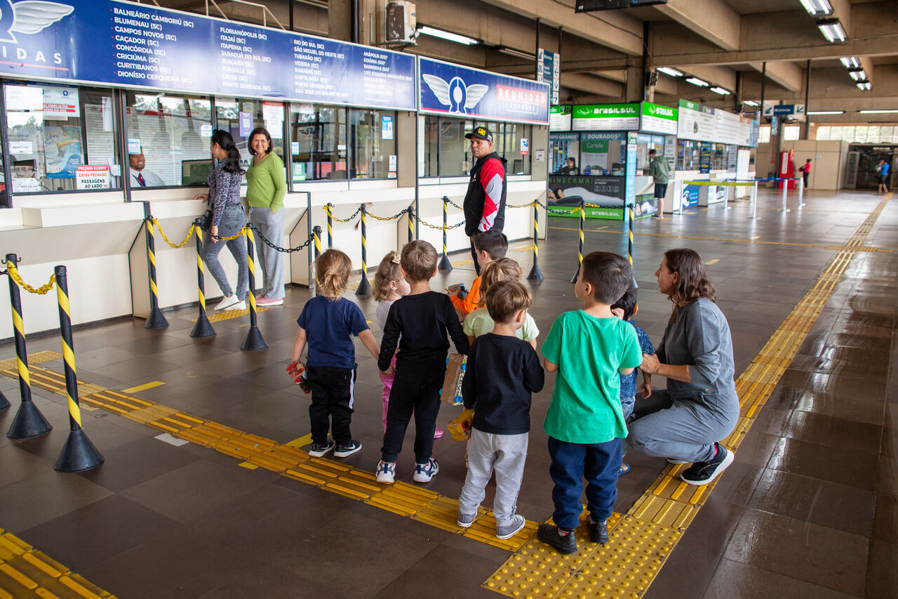 Uma turma de maternal, do Centro de Educação Infantil Municipal Brincar e Crescer, realizou juntamente com os professores uma visita técnica ao Terminal Rodoviário de Chapecó. O objetivo foi explorar o local e o que pode ser feito lá, desde a compra de passagens até o embarque e desembarque de passageiros.