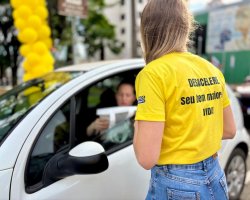 A Prefeitura de Chapecó, em parceria ATRAESC (Associação de Trânsito do Estado de Santa Catarina), realizou na manhã desta sexta-feira (9), uma Blitz Educativa, na Praça Coronel Bertaso, com distribuição de materiais informativos, interação com personagens da campanha e sensibilização da população para a importância da responsabilidade no trânsito.