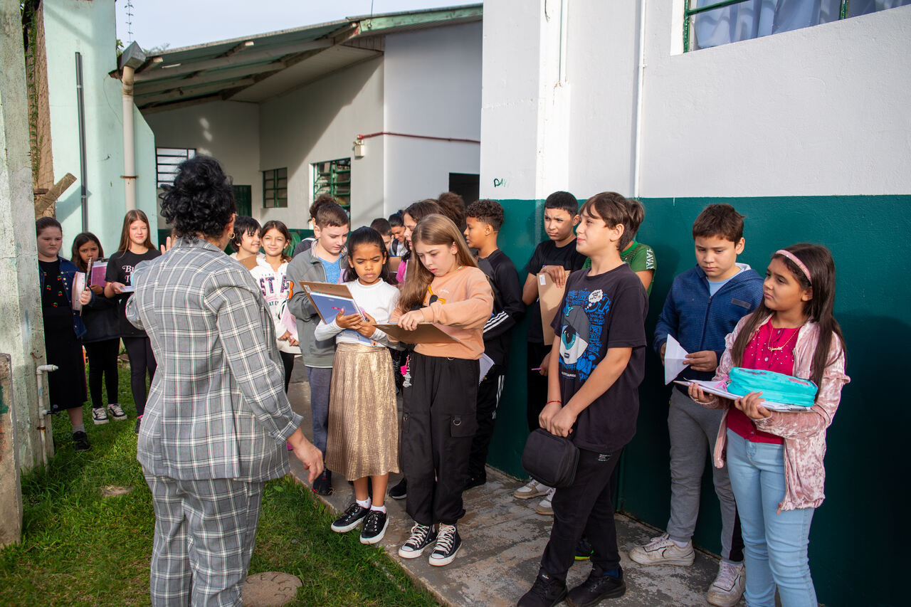 A professora Janete comentou sobre a iniciativa. Esta atividade integra o nosso planejamento para este trimestre, no qual estamos trabalhando com textos diversos, como por exemplo, poemas e cartas. Fizemos seminários, mapas mentais e produções e, para concluir a ação, realizamos esta caça ao tesouro, que consiste em encontrar os textos e identificá-los seguindo as pistas fornecidas, disse ela.