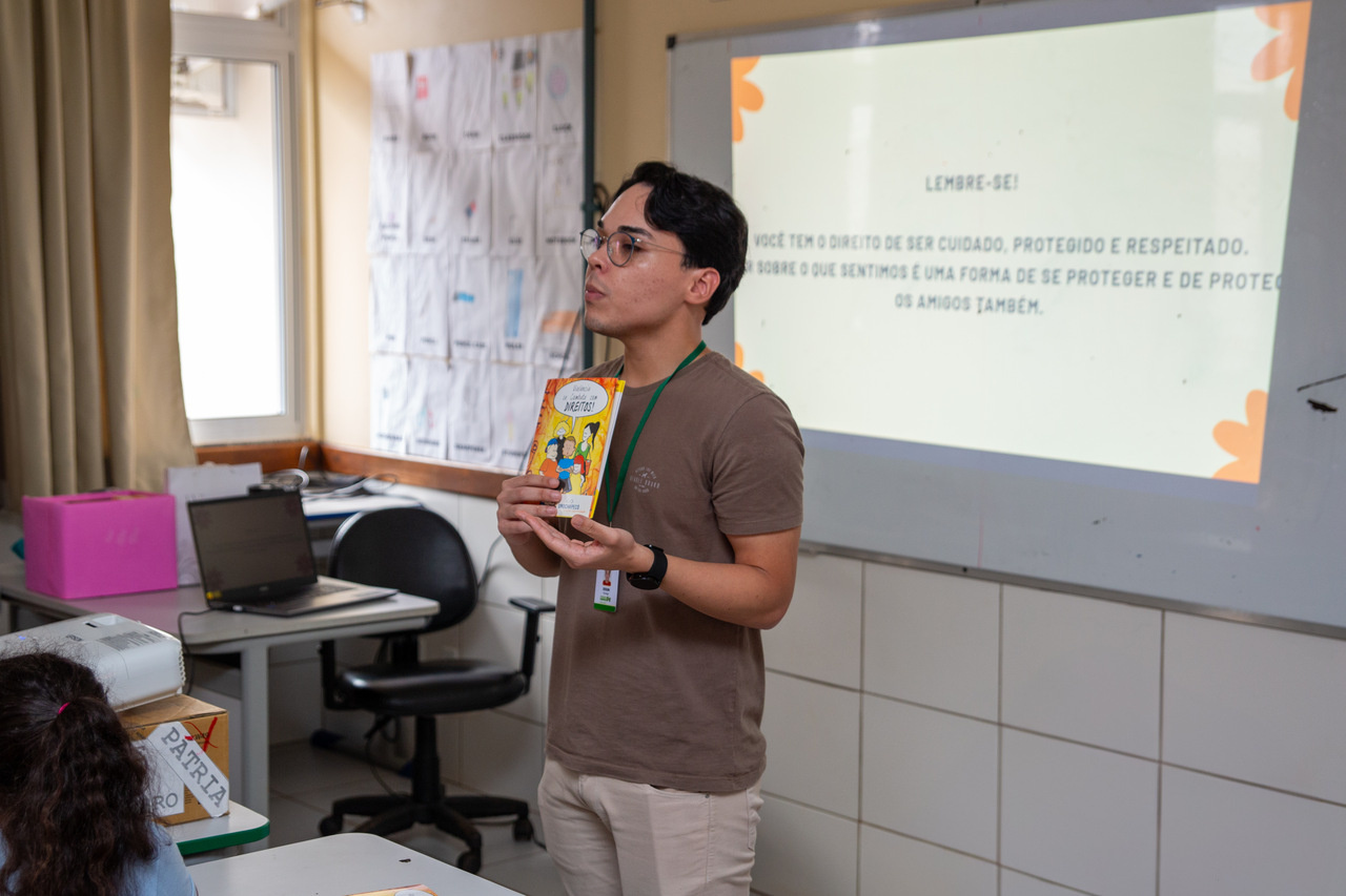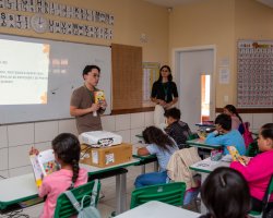 Com o objetivo de sensibilizar, informar e conscientizar a comunidade escolar sobre a importância da proteção integral das crianças, os Núcleos de Apoio Multiprofissional aos Estudantes estão desenvolvendo diversas ações, como rodas de conversa e distribuição de materiais de apoio para os estudantes das escolas da Rede Municipal de Ensino.