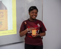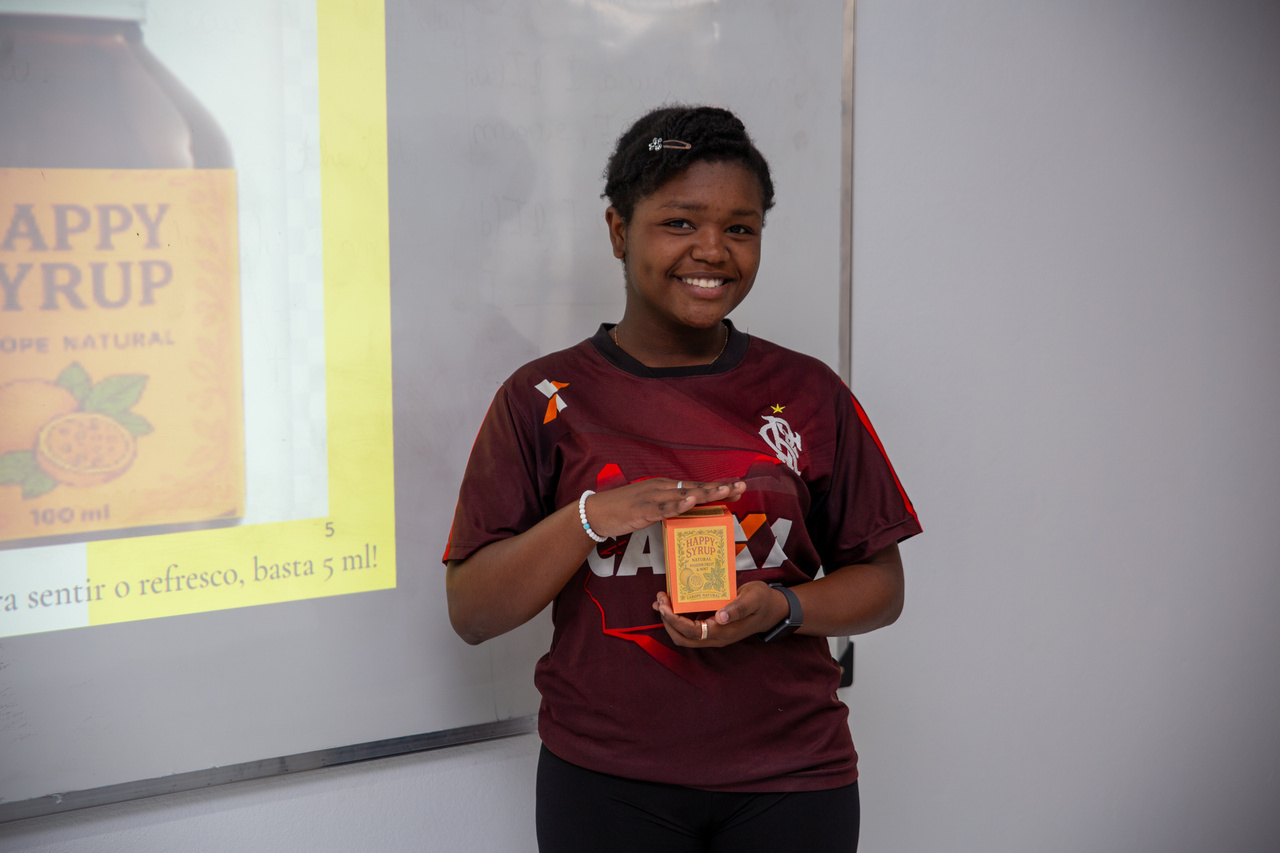 Para a nossa empresa multinacional, desenvolvemos uma marca de cosméticos não comuns, pensando na sustentabilidade, no meio-ambiente e na natureza. O nome da marca é Verdié para relacionar com a cor verde, que remete à natureza e com os próprios produtos, pois todos eles são verdes, disse Izabelli Pasa. Para a colega, Isabelli Ramos, a atividade foi uma oportunidade de produzir algo novo, fora da zona de conforto. Foi muito legal me reunir com os colegas para desenvolver uma marca, criar algo com as nossas ideias, desde o nome da empresa, os produtos, a matéria-prima utilizada, o público alvo, os países em que atuamos, enfim todas as características que uma empresa multinacional precisa ter. Eu gostei bastante, afirmou a estudante.