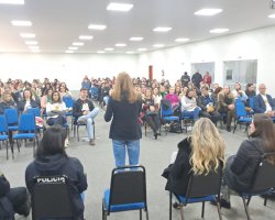 Além disso, foram apresentadas as cartilhas informativas que serão distribuídas e trabalhadas com as crianças e adolescentes em toda a Rede Pública Escolar de Chapecó. A autora dos materiais é a assistente social, Juliana Steil Maciel.