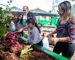 A secretária de Educação, Astrit Tozzo, disse que o Projeto Afetividade para Reaprender é uma iniciativa da Rede Municipal, que contribui muito para a recomposição da aprendizagem dos estudantes. O objetivo é que as crianças reforcem os estudos de maneira lúdica e prática. Parabéns à professora e à equipe da escola por organizar esse momento no horto municipal, finalizou.