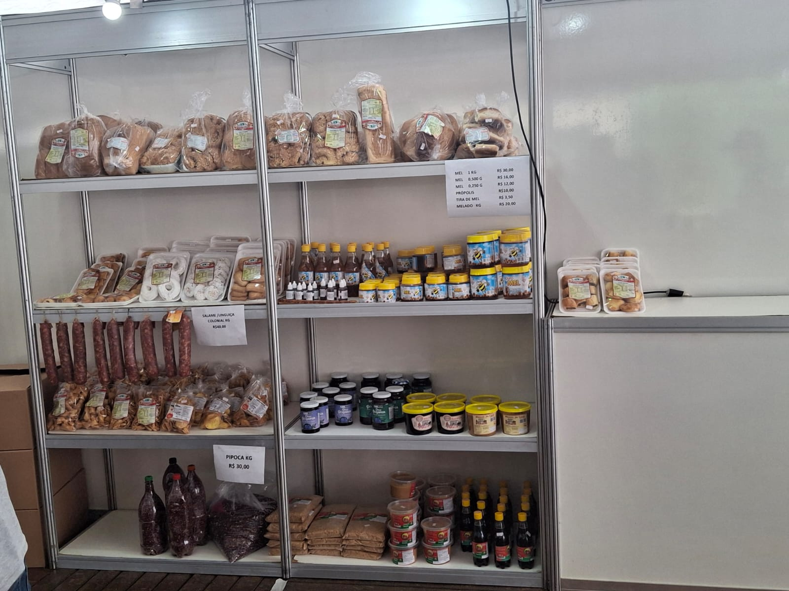De acordo com o coordenador da feira, Réges Chimello, estão sendo vendidos salame, queijo, carne embalada à vácuo, panificados, sucos, geleias, doces, mel e também produtos in natura, como frutas e verduras, direto do produtor. Também tem opções de refeições no local e apresentações culturais para o público.