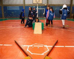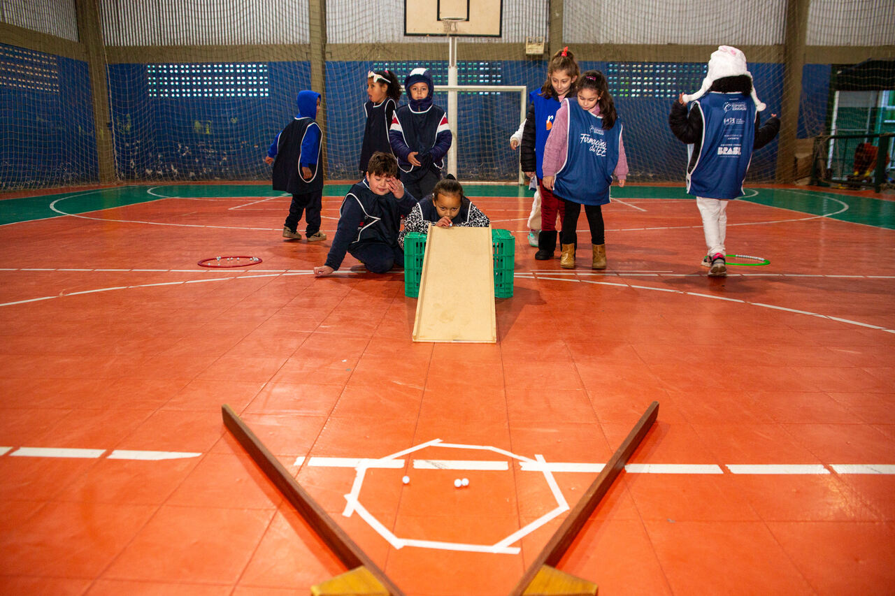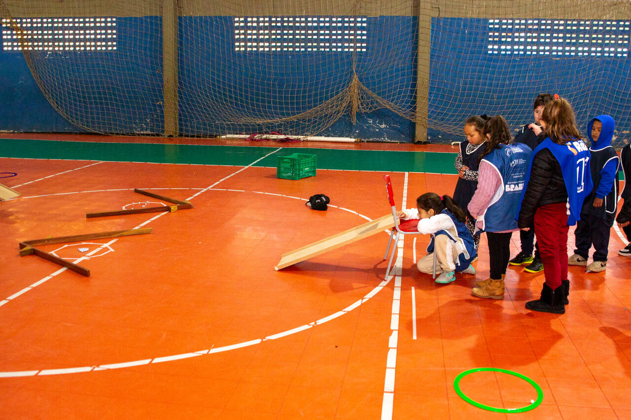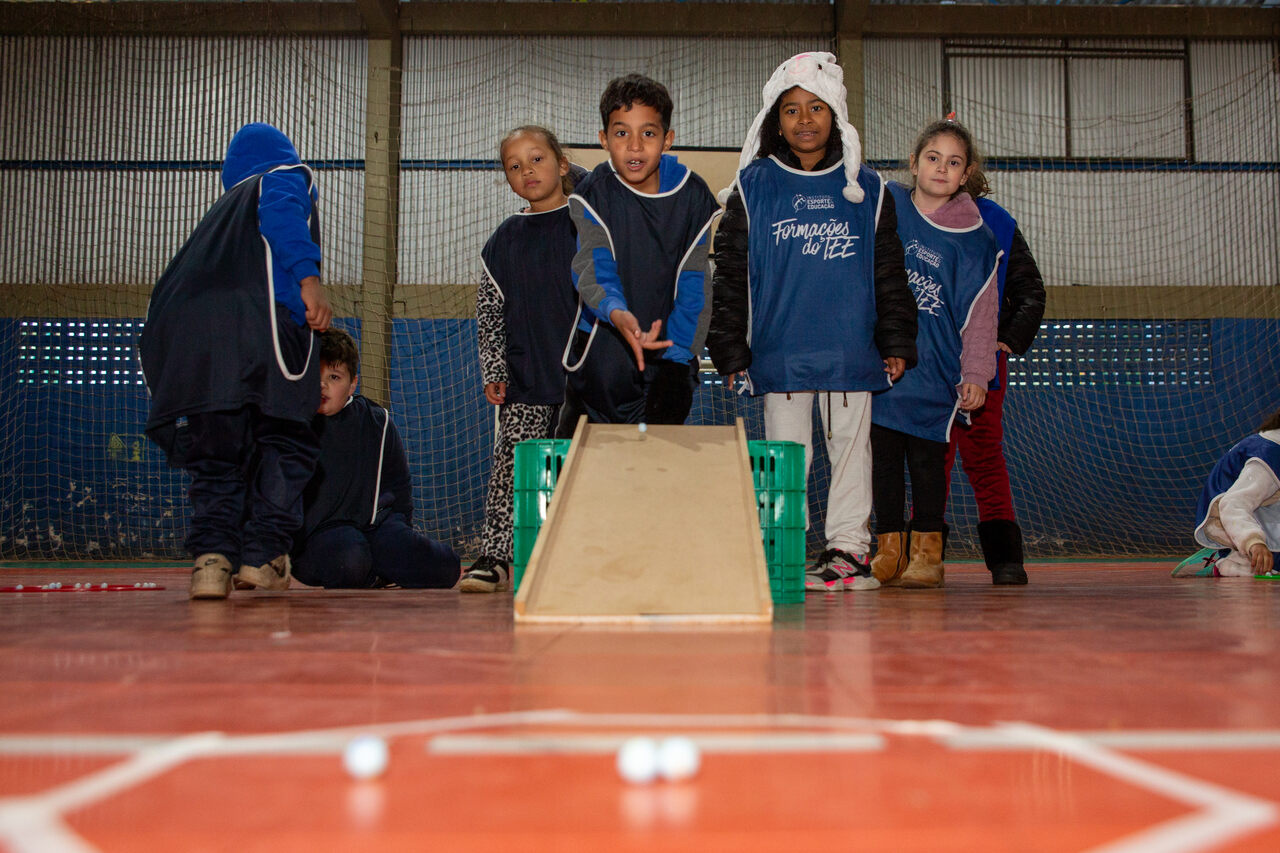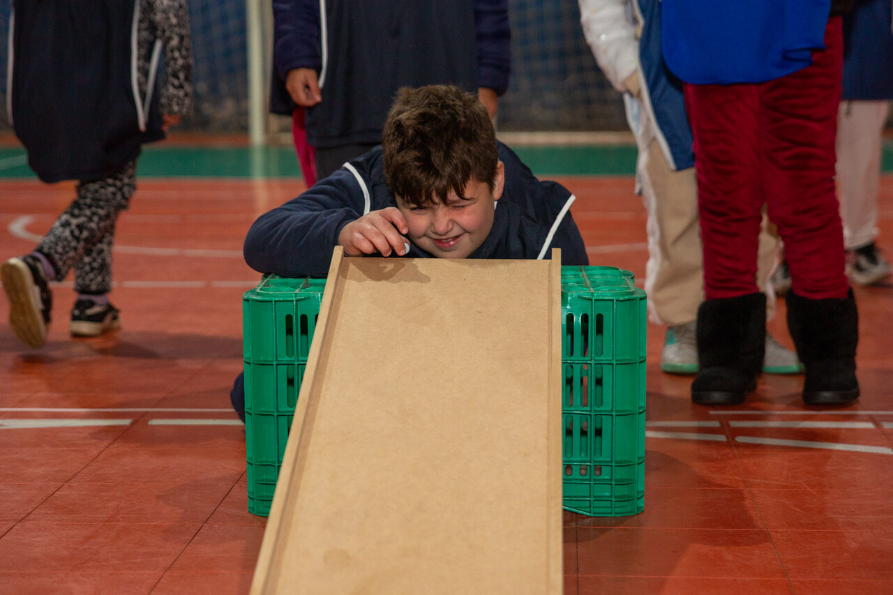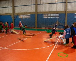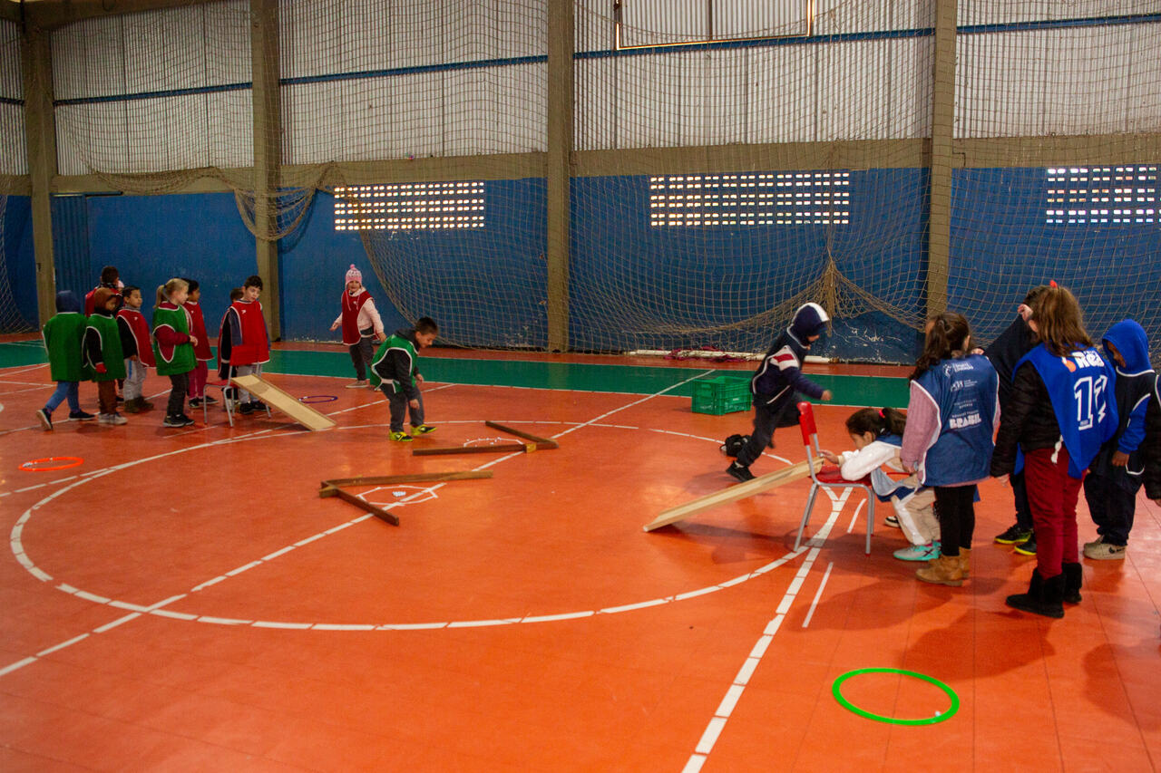 As turmas de 1º e 2º ano da Escola Básica Municipal Jardim do Lago tem vivenciado, durante o segundo trimestre, nas aulas de Educação Física, jogos que ainda não fazem parte do cotidiano das crianças da escola. Um deles, como o jogo La Planche, popular na França, que envolve o uso de uma tábua plana e bolinhas de gude. O objetivo é fazer com que as bolinhas caiam da tábua e, ao mesmo tempo, entrem em contato com as que estão no chão, as retirando do jogo.