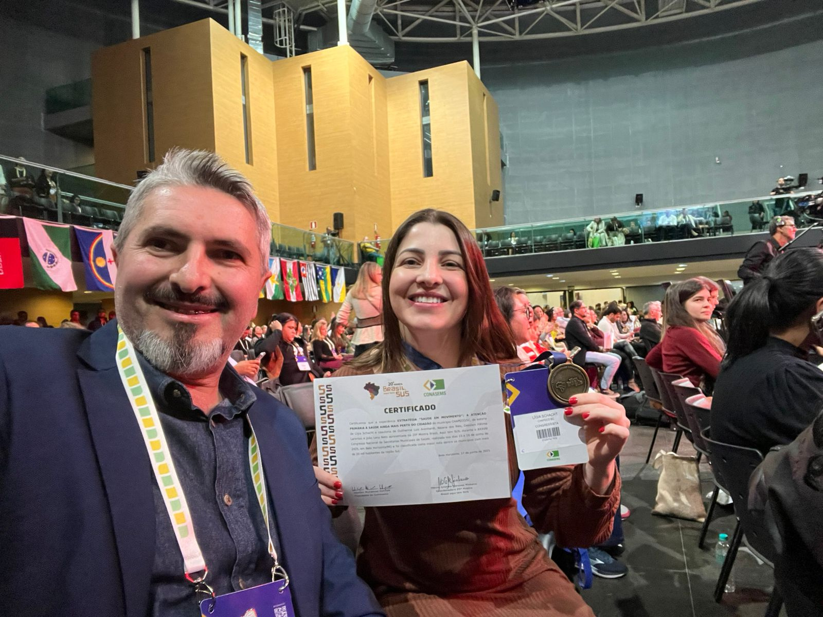 A Estratégia Saúde em Movimento foi inicialmente apresentada durante o 9º Congresso de Secretarias Municipais de Saúde de Santa Catarina, realizado no município de Blumenau/SC, no período de 26 a 28 de março. Na ocasião, foi reconhecida como uma experiência exitosa no âmbito estadual, sendo selecionada para representar Santa Catarina na etapa nacional, realizada esta semana na capital mineira. A Saúde de Chapecó está em festa. Temos um projeto exitoso reconhecido no país inteiro, declarou o secretário de Saúde de Chapecó, João Lenz. Também participou do evento a gerente de Atenção Básica, Ligia Schacht.