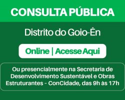 A Prefeitura de Chapecó, através da Secretaria de Desenvolvimento Sustentável e Obras Estruturantes, informa que encerra na sexta-feira (27) o prazo de consulta pública para o Distrito do Goio-Ên e as Macroáreas do Aeroporto, Lajeado São José e Goio-Ên.
