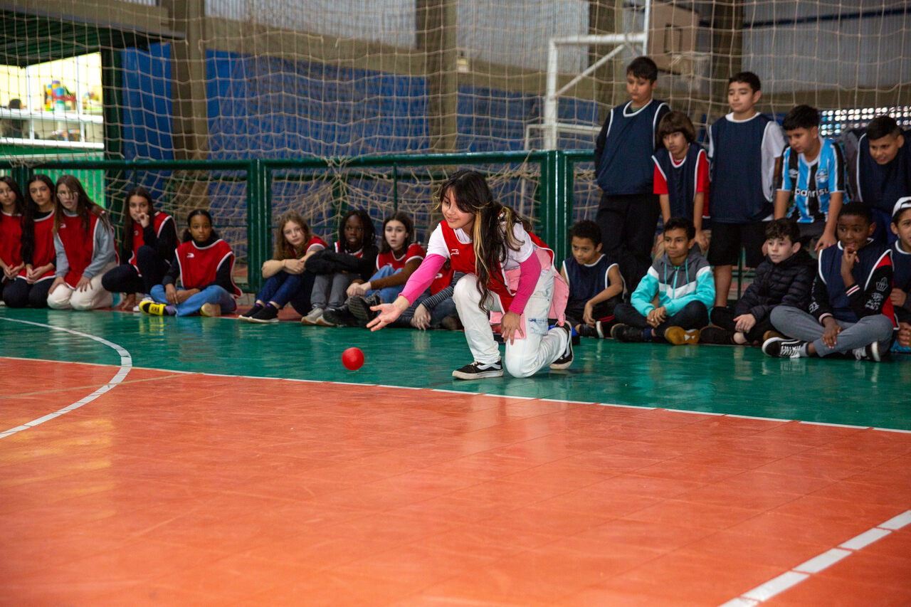 Vitória Yasmin de Oliveira Nunes, aluna do 6º ano, destaca a importância do controle e da estratégia para jogar bocha. O jogo nos ajuda a desenvolver o controle da força e a utilizar de diferentes estratégias, porque não podemos jogar nem muito forte, nem muito fraco. O posicionamento do corpo também é importante para jogar melhor, compartilha.