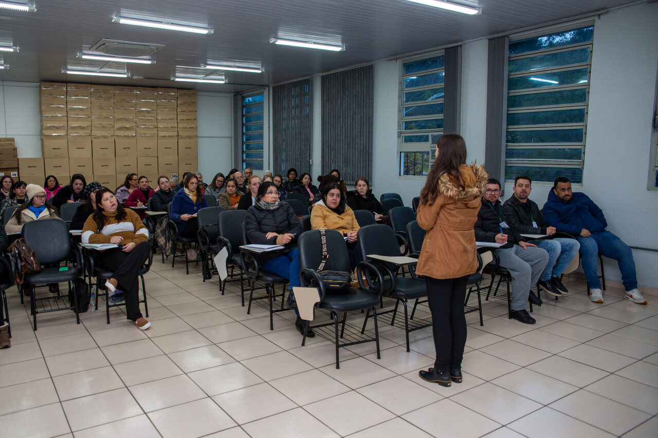 - 13h15 às 17h15: Ensinar e avaliar com intencionalidade: da construção das habilidades à prática em sala de aula. Professores de Língua Portuguesa, Matemática, Ciências, Geografia e História que trabalham apenas no período vespertino. Local: Auditório da EBM Luiza Santin, bairro Santa Maria.