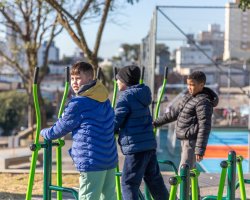 Timothy Emanuel Rivas, 11 anos, aluno da Escola Neiva Costella, aproveitou para utilizar os equipamentos e disse que o espaço ficou muito bonito. Já Sami Abddal, 14 anos, aguardou ansiosamente o ato de inauguração, com a bola debaixo dos pés, para utilizar a quadra nova.
