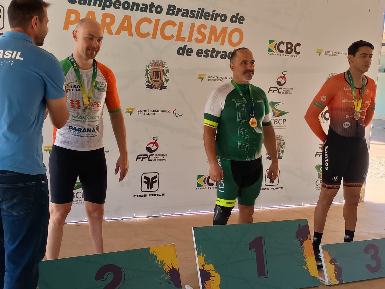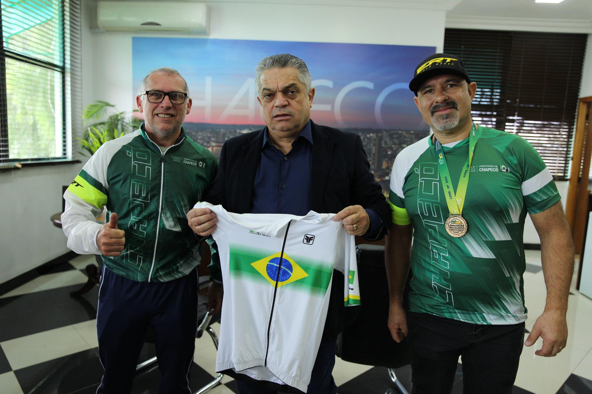 O paraciclista chapecoense André Luiz Carneiro sagrou-se campeão brasileiro na prova contra relógio categoria C4, disputada no sábado (19), na cidade de Leme-SP. E na manhã desta terça-feira (22) ele esteve na Prefeitura de Chapecó, acompanhado do técnico Jair Damásio, para mostrar a medalha ao prefeito João Rodrigues e agradecer o apoio da Administração Municipal, via Secretaria de Esportes e Juventude.