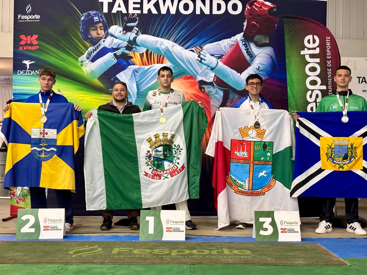 No Taekwondo, Chapecó conquistou medalhas importantes: Ouro para Murilo Ricardo Raatz na categoria até 68kg, Ouro para Ryan Henrique Teixeira Bergamin na categoria até 78kg, e Prata para Felipe Brehmer de Souza no Poomsae.