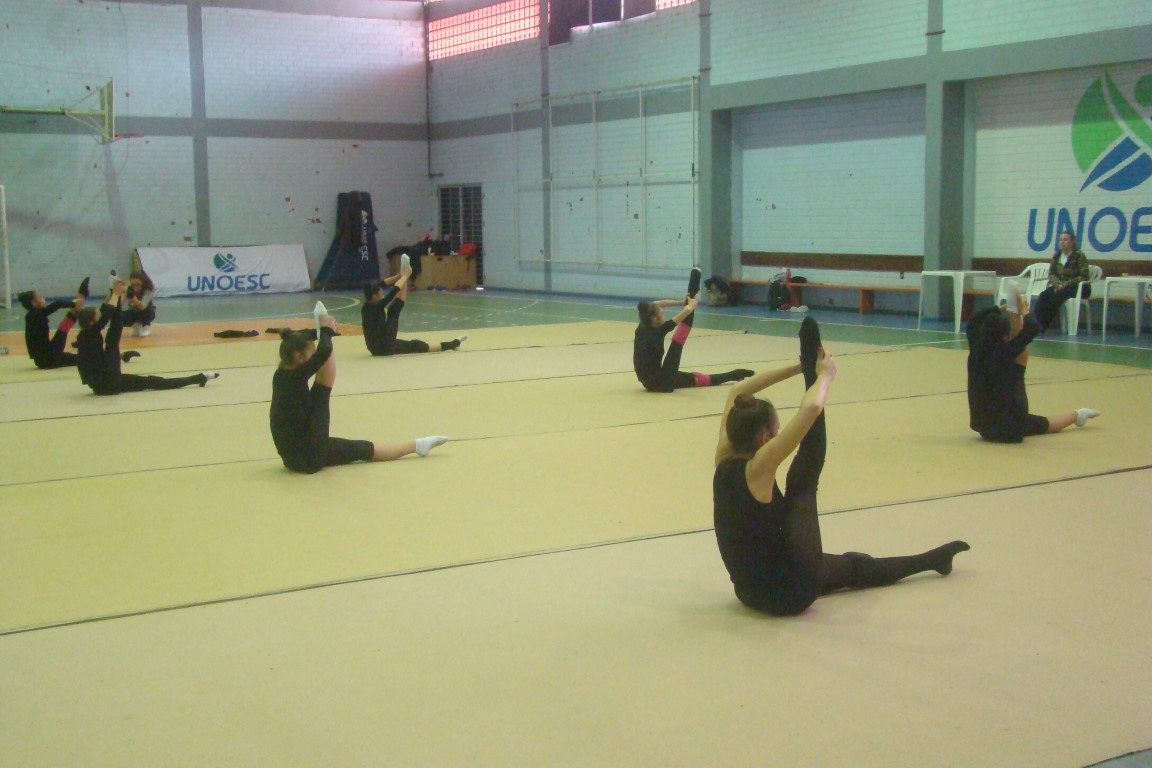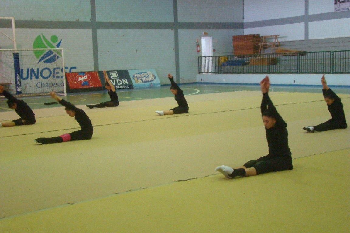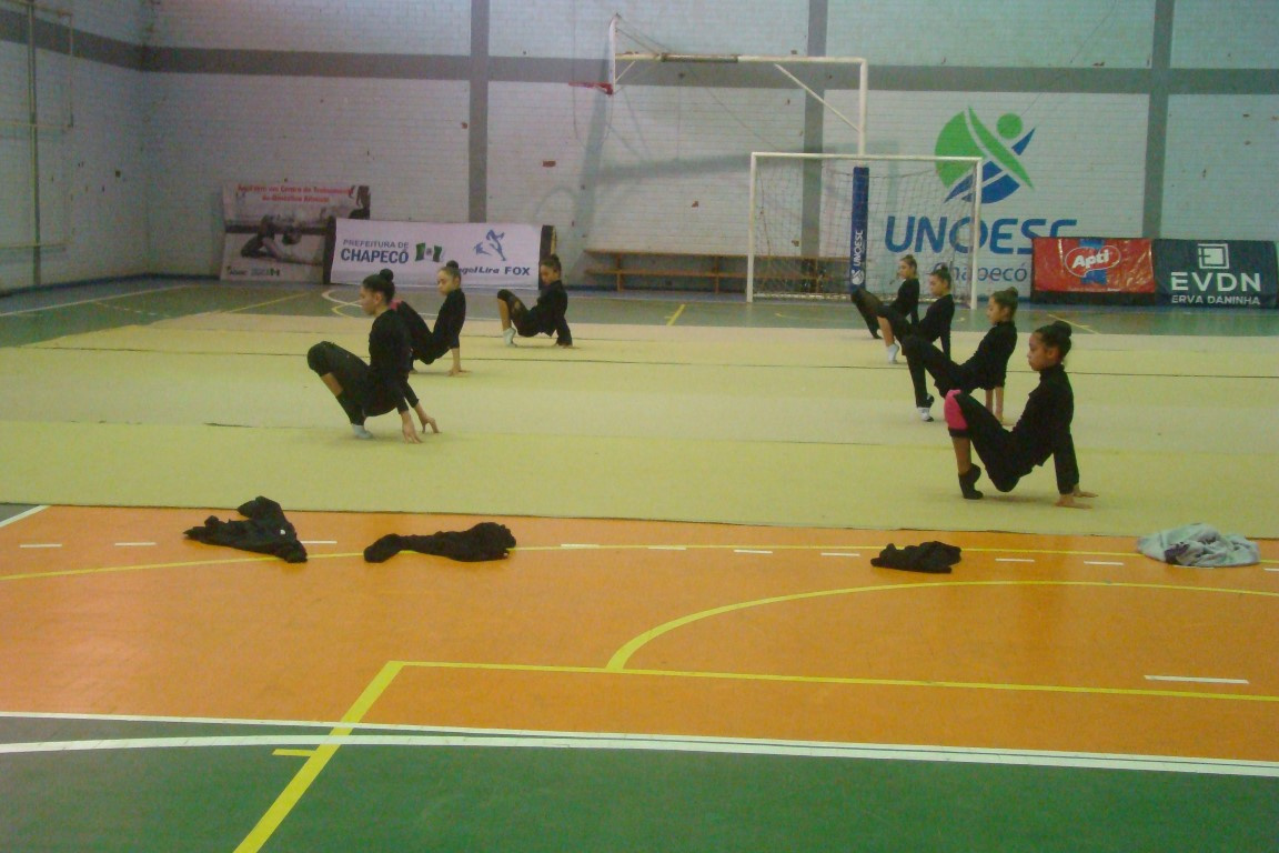 A atual equipe juvenil vem treinando junto há cerca de nove anos e a busca da perfeição é constante. O material humano existe, mas a carência de uma estrutura adequada exige mais das ginastas que dividem o tempo entre os treinamentos, a vida social e escolar, os consultórios e clínicas médicas. De acordo com Cristiane, a falta de um piso adequado para a ginástica rítmica causa muitas lesões de tornozelo e fratura de dedos por estresse. Nos Joguinhos Abertos uma das meninas atuou com dois dedos fraturados, revela Cristiane. É possível observar de perto nos treinos a dedicação e o extremo que se exige dos corpos. Mesmo com estrutura menor, Chapecó tem feito frente a potências da GR em Santa Catarina, como Blumenau e Joinville e até Florianópolis que possui quatro tablados para esse esporte, afirma ela.
