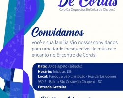 O mês de aniversário de Chapecó traz uma extensa programação cultural para toda a comunidade. Um dos eventos preparados pela Secretaria de Cultura de Chapecó é o Encontro de Corais, que será realizado dia 30 de agosto, na Paróquia São Cristóvão.