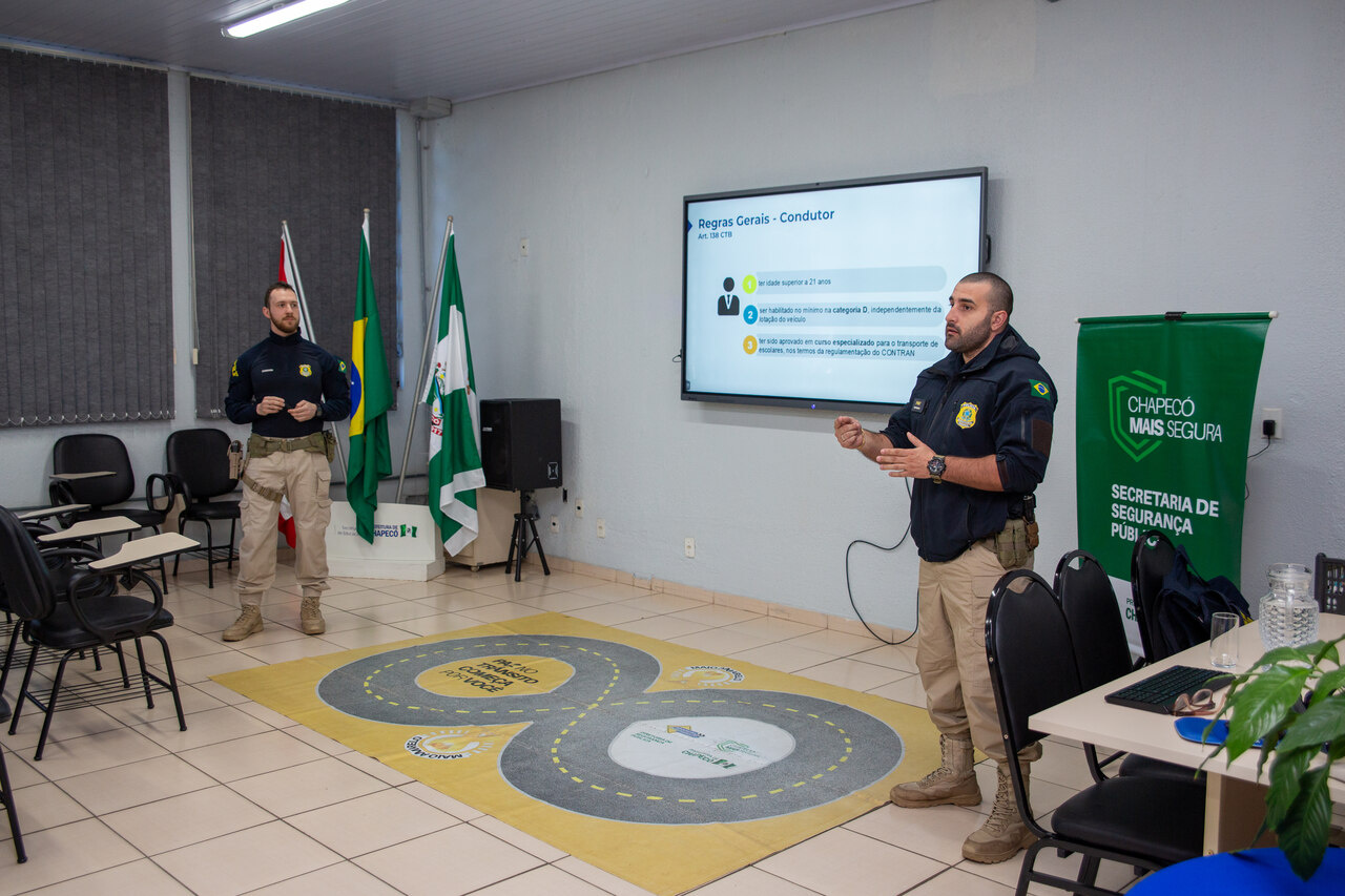 A Prefeitura de Chapecó, por meio das Secretarias de Educação e Segurança Pública, promoveu na quinta-feira (31) formação voltada aos motoristas que atuam no transporte escolar da Rede Municipal de Ensino. Participaram do encontro motoristas vinculados à Secretaria de Educação e os profissionais das empresas terceirizadas que realizam o transporte de estudantes da zona rural.