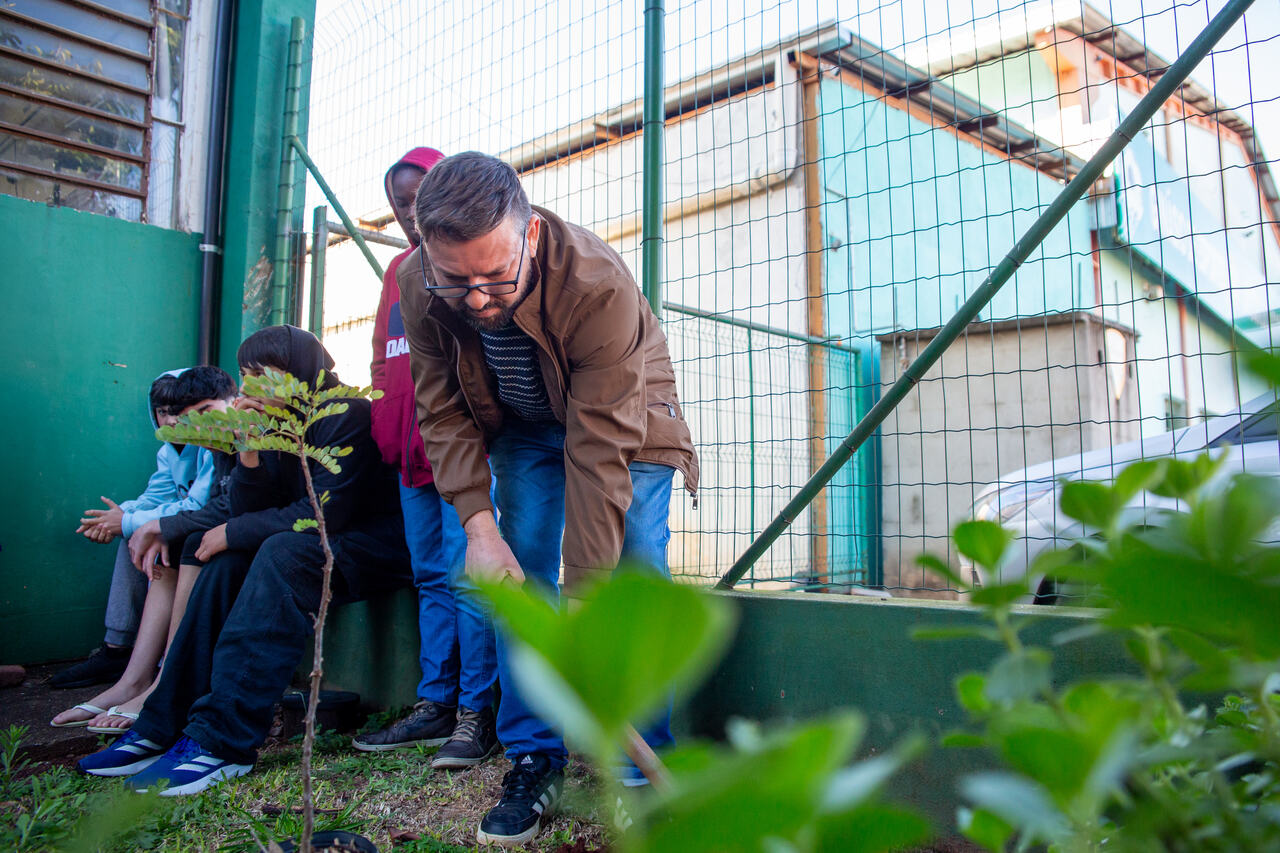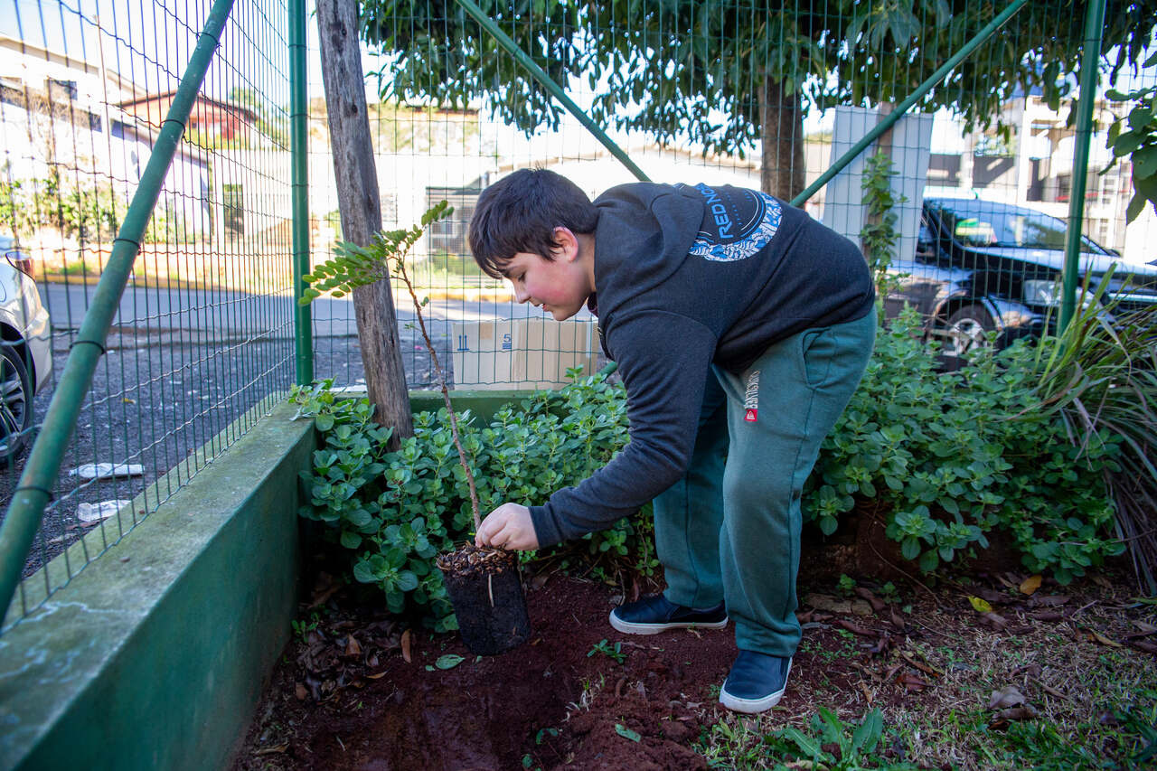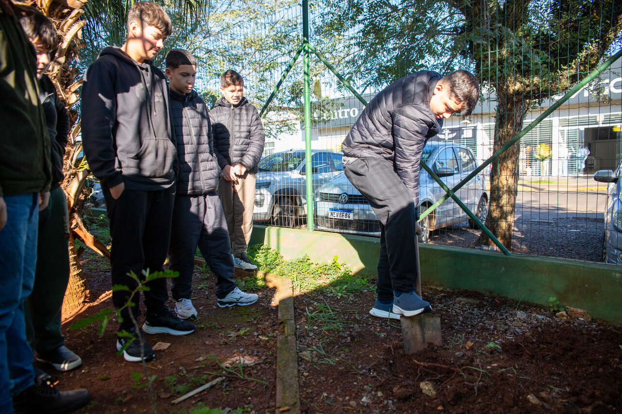 Para o aluno Thiago Francesconi, o momento teve um valor especial. Eu já conhecia essa planta por causa da propriedade dos meus avós. Foi muito legal poder plantá-la aqui na escola também, compartilhou.